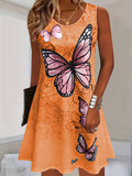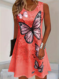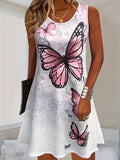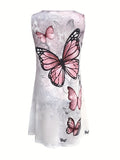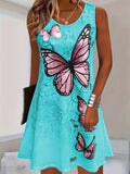 Summer Women's Fashion Butterfly Print Sleeveless Vest Dress Round Neck Casual Dress