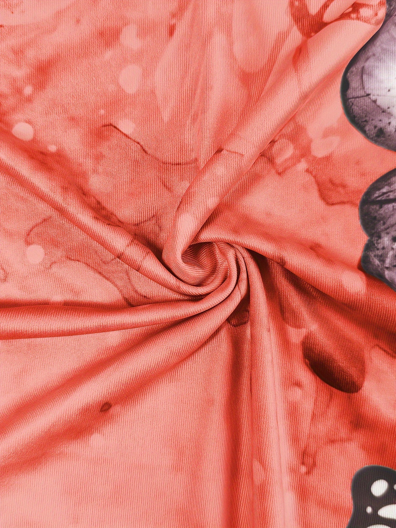 Sale Three-quarter Illusion Sleeve Floral Dress, Casual Keyhole Crew Neck Loose Dress