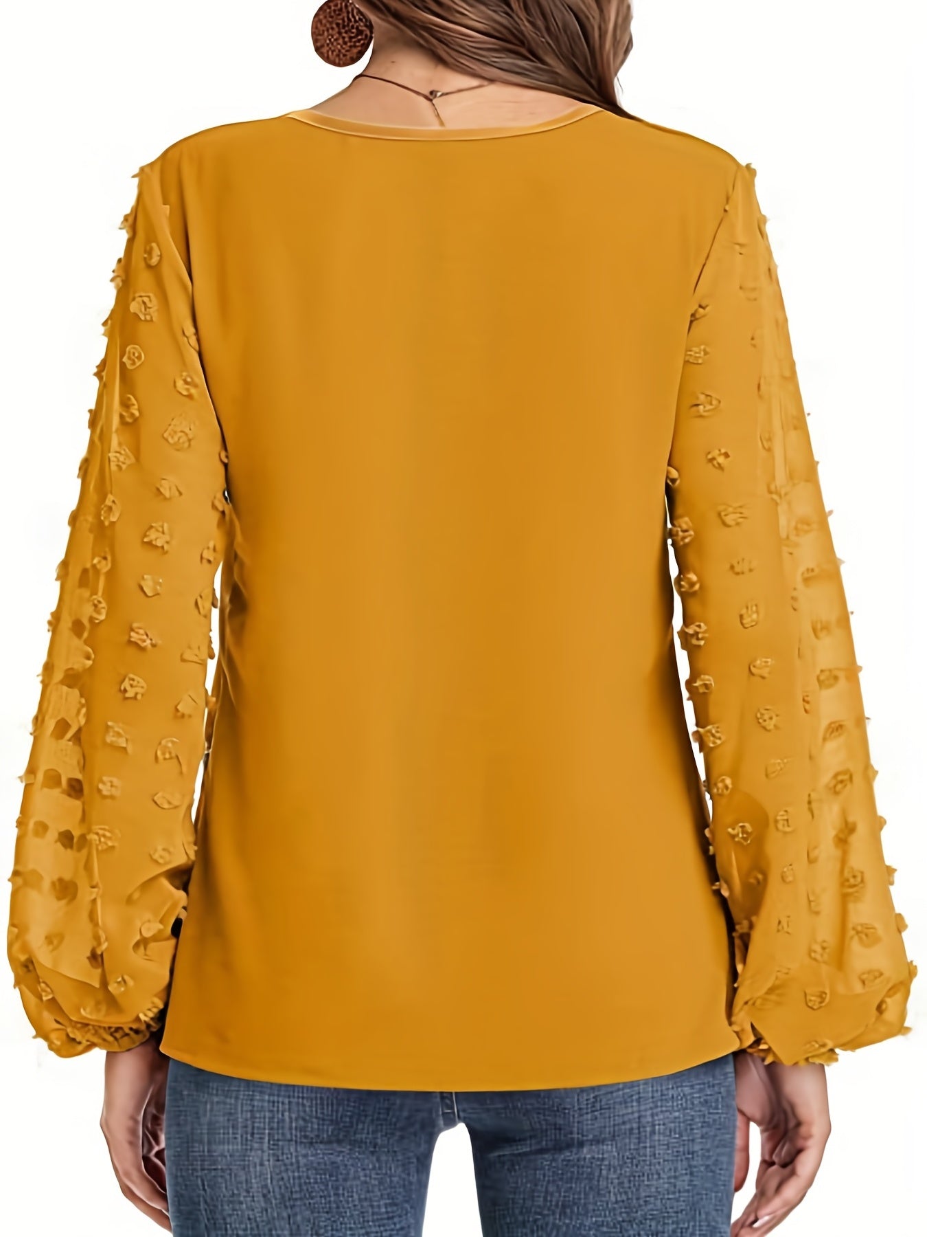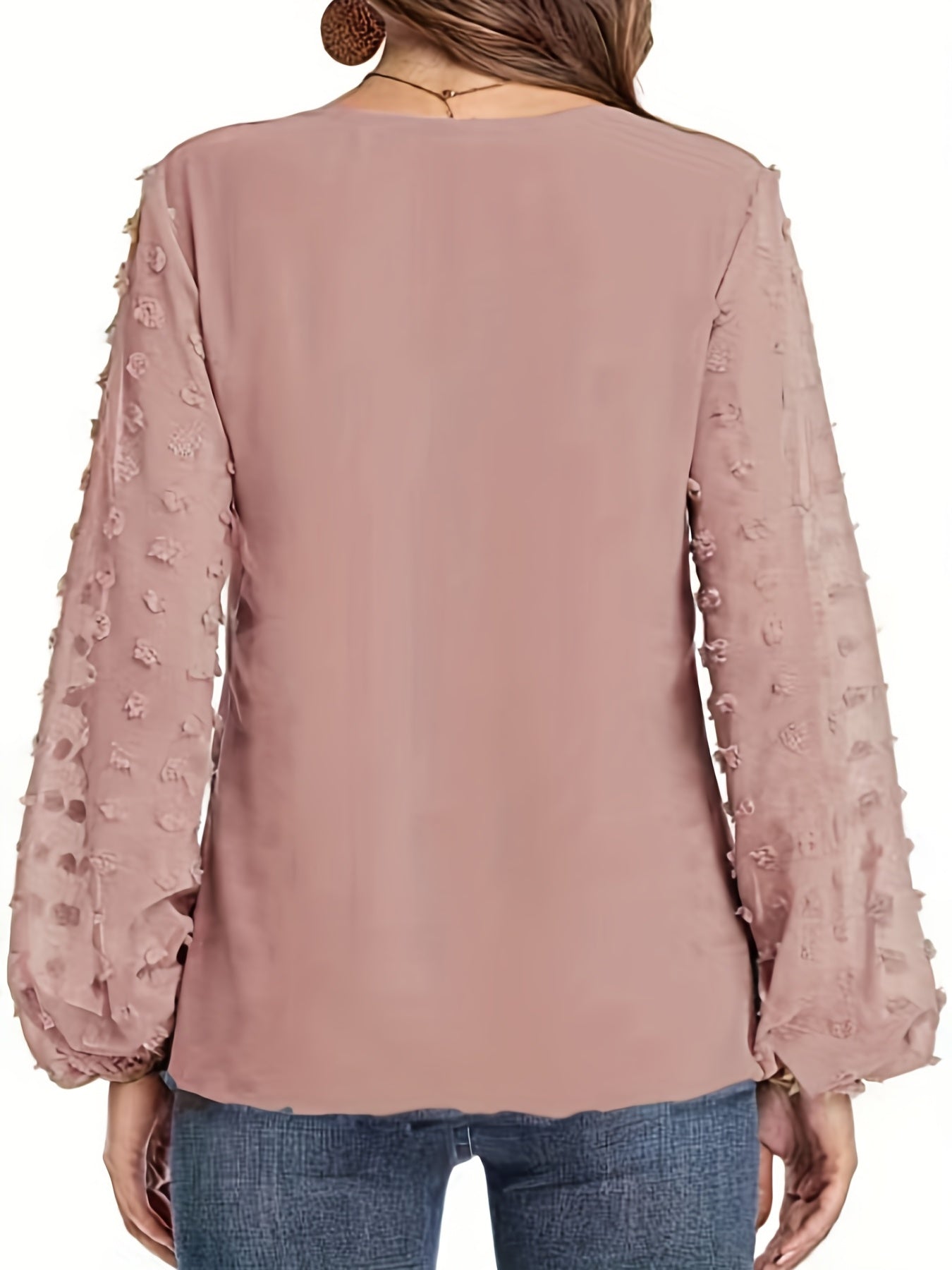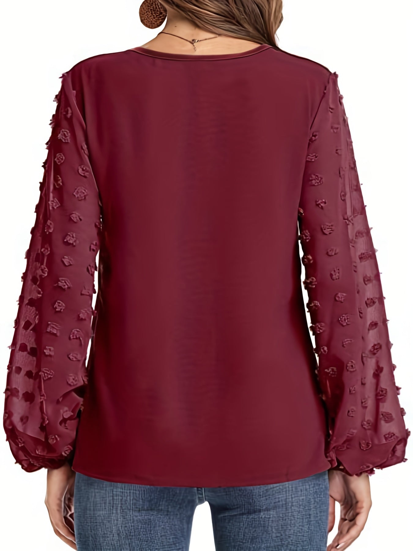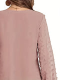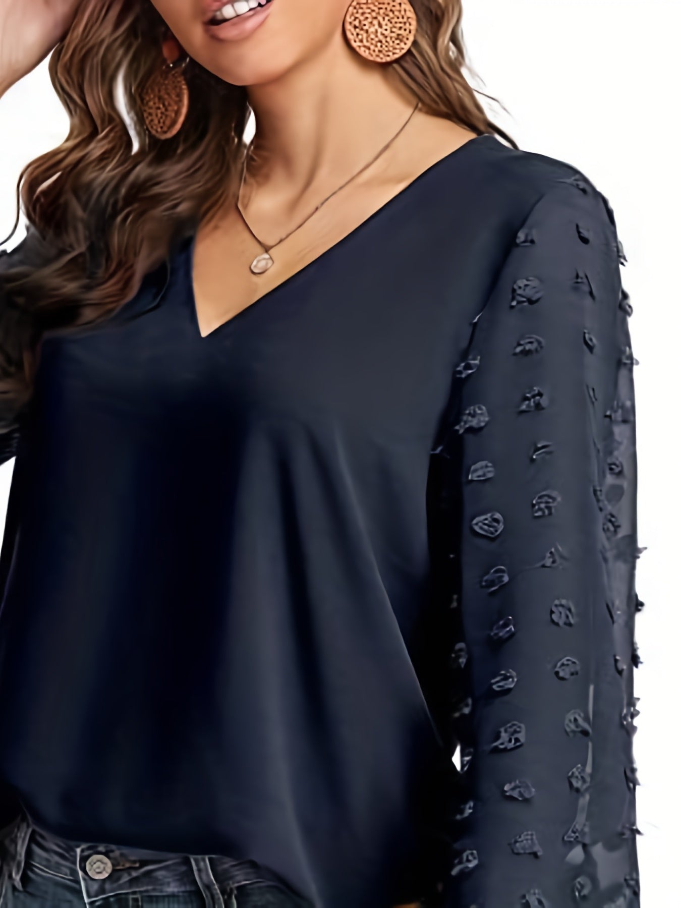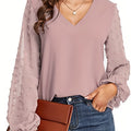Swiss Dot Sleeve Shirt, Casual V Neck Solid Shirt