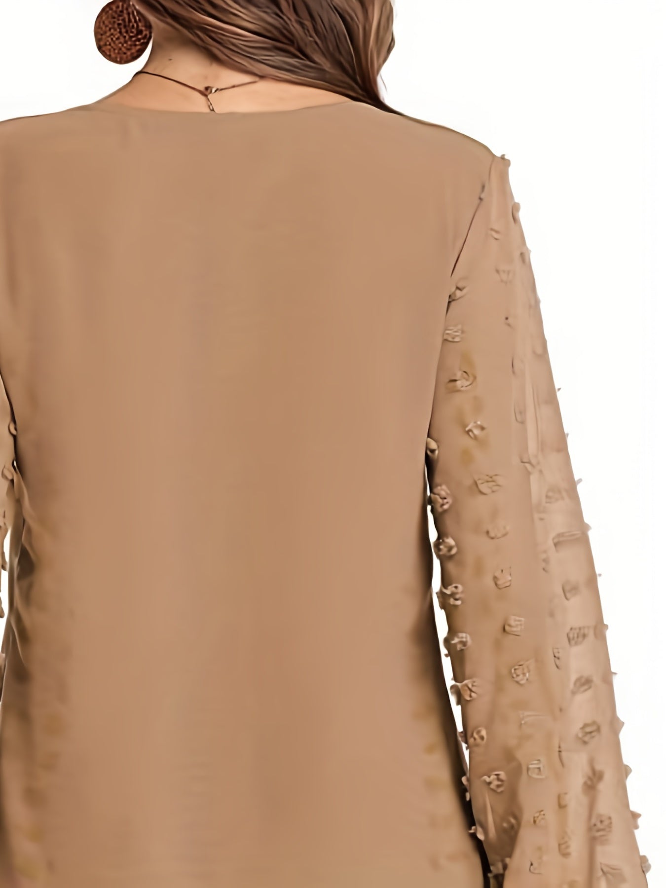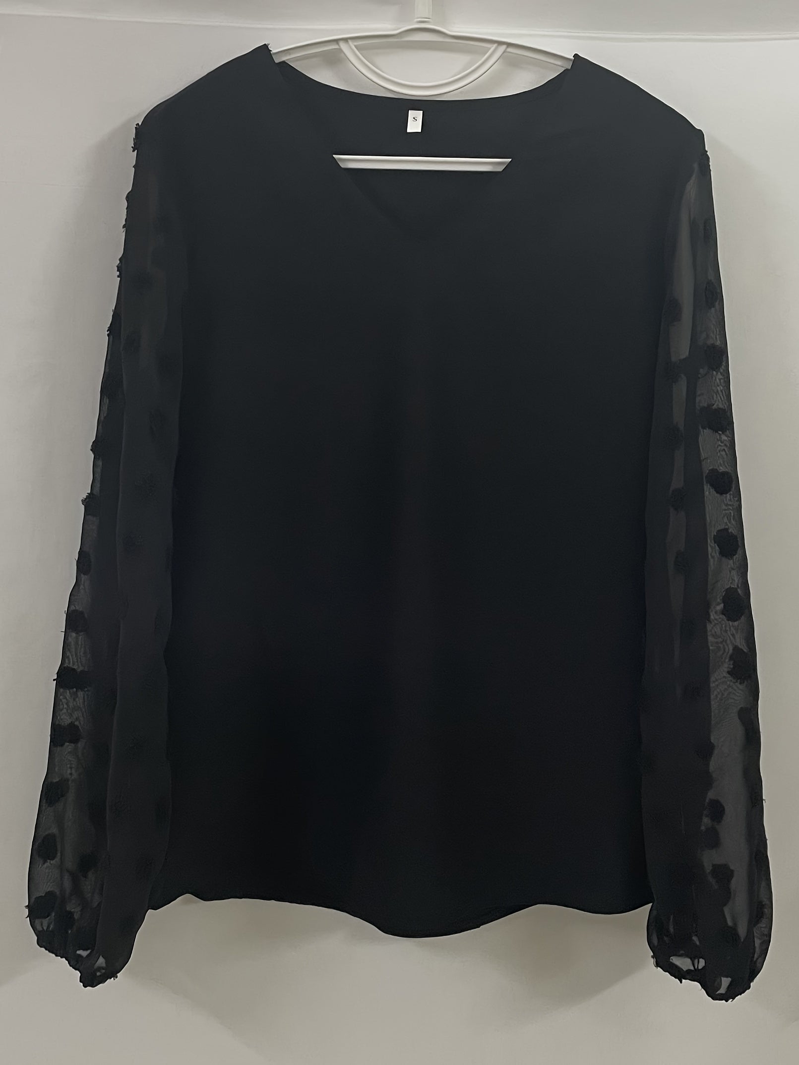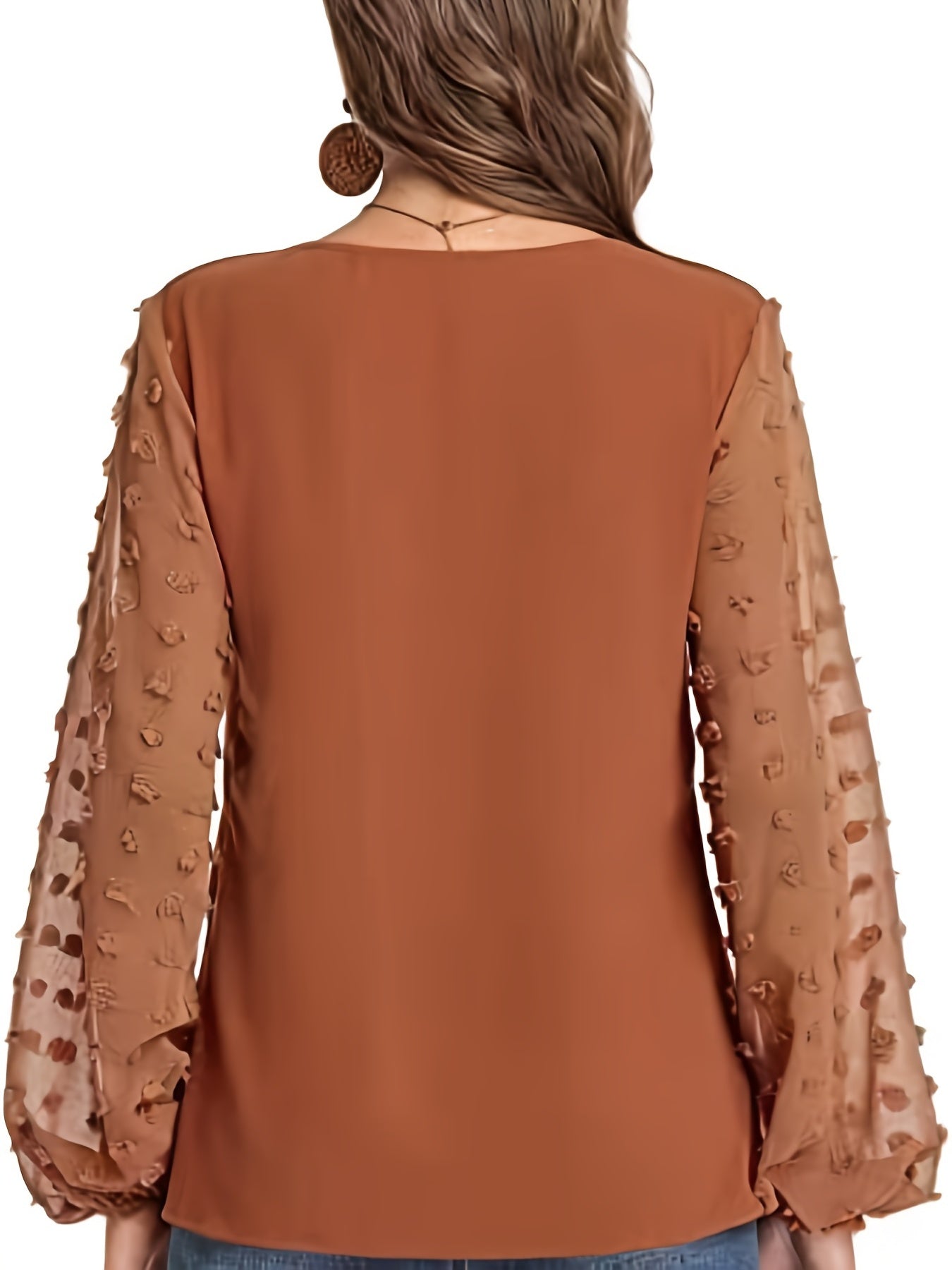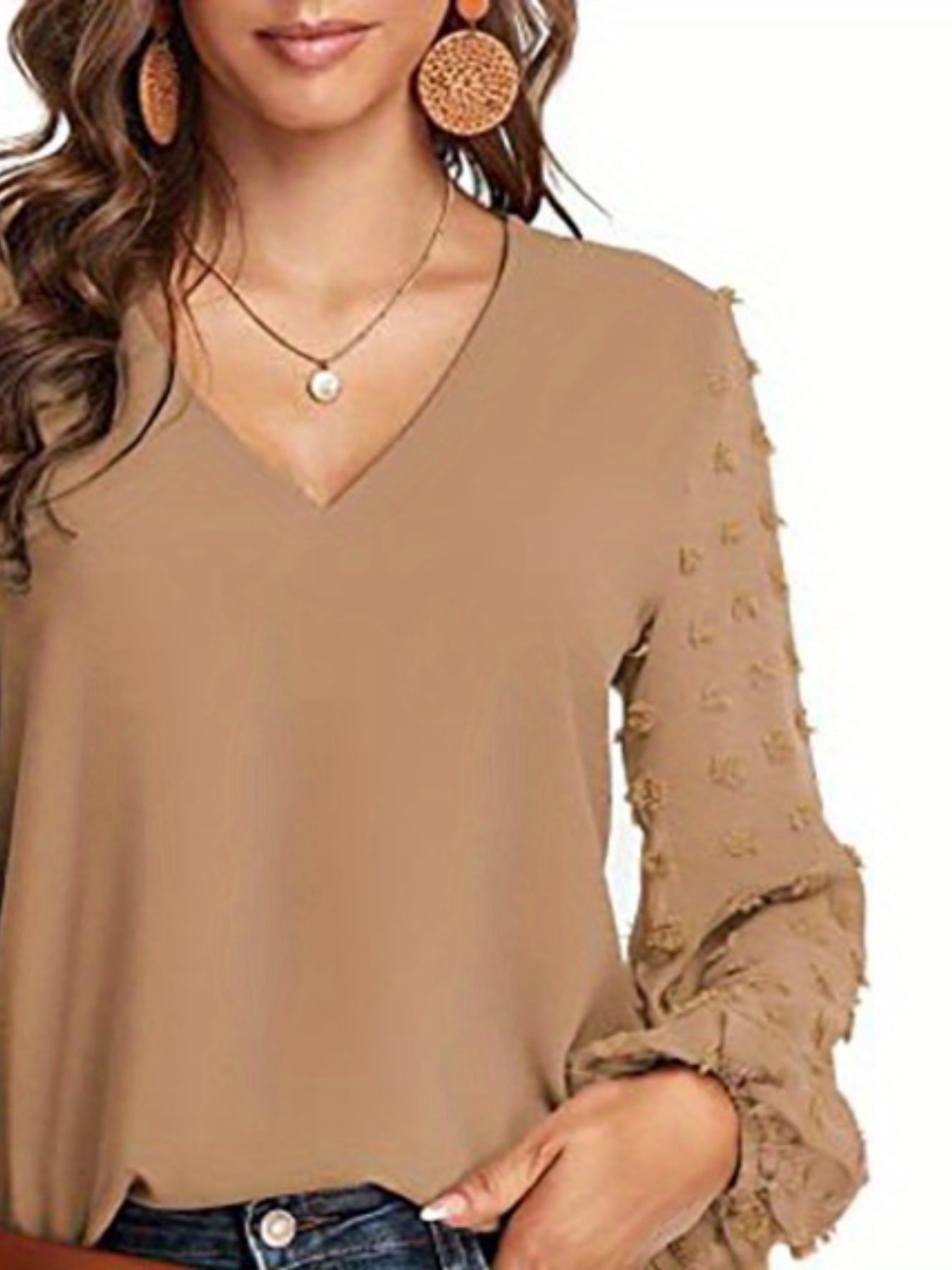 Swiss Dot Sleeve Shirt, Casual V Neck Solid Shirt
