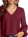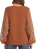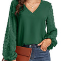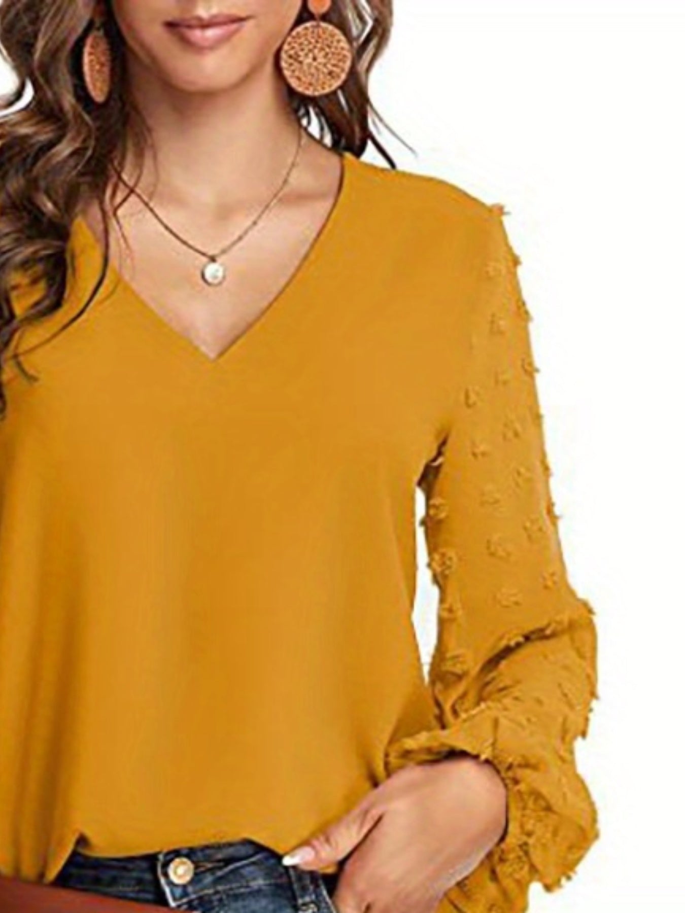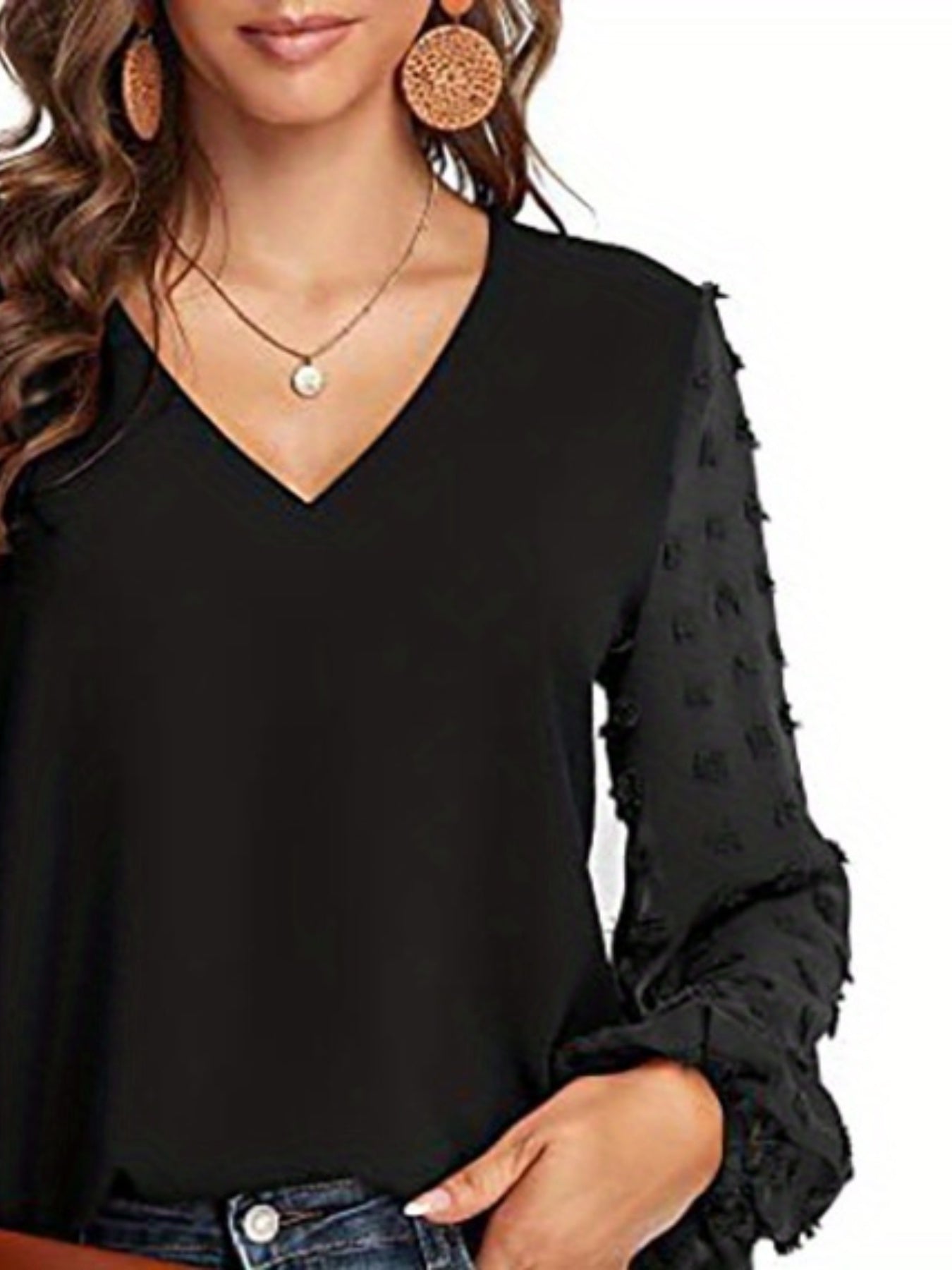 Sale Swiss Dot Sleeve Shirt, Casual V Neck Solid Shirt