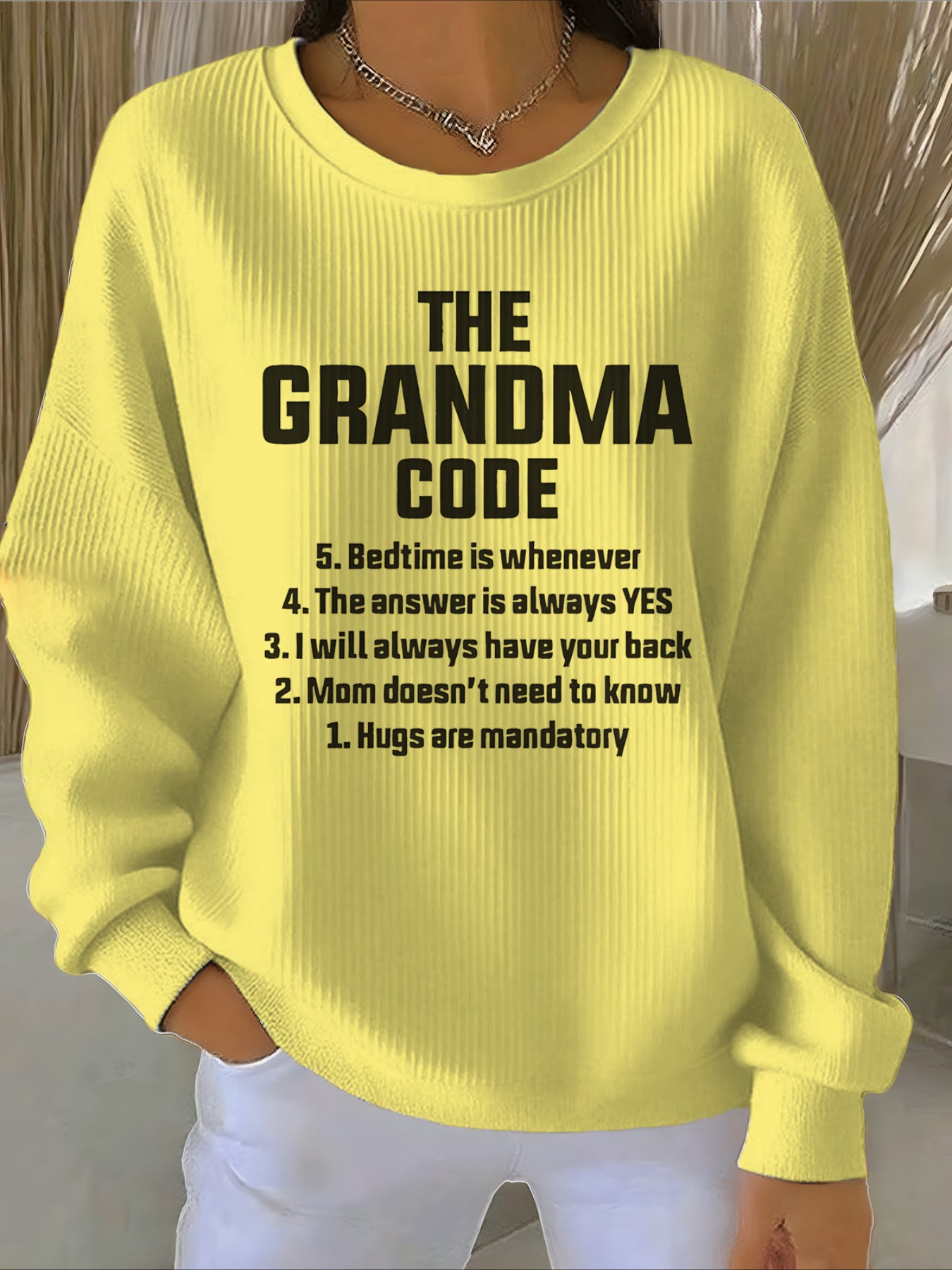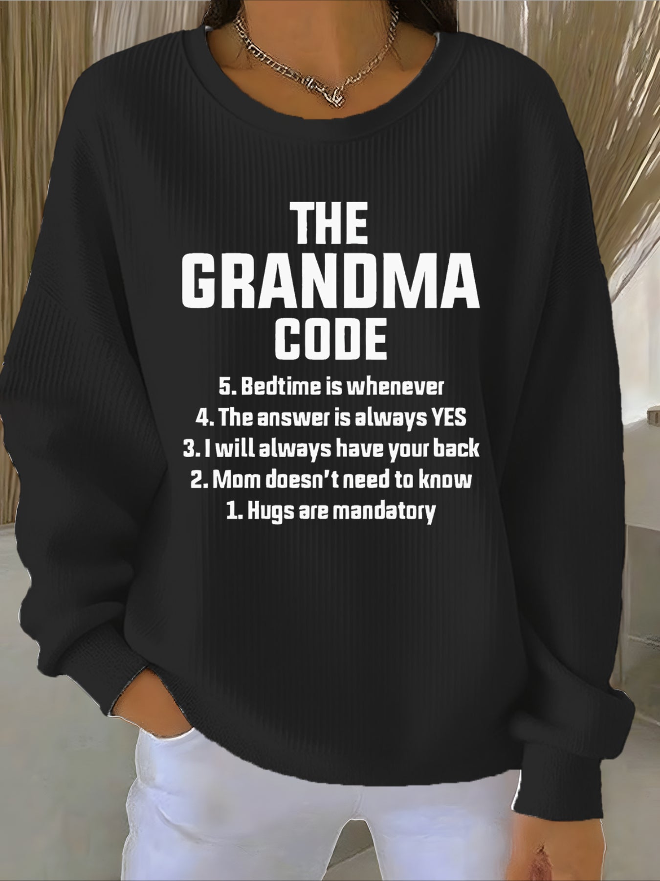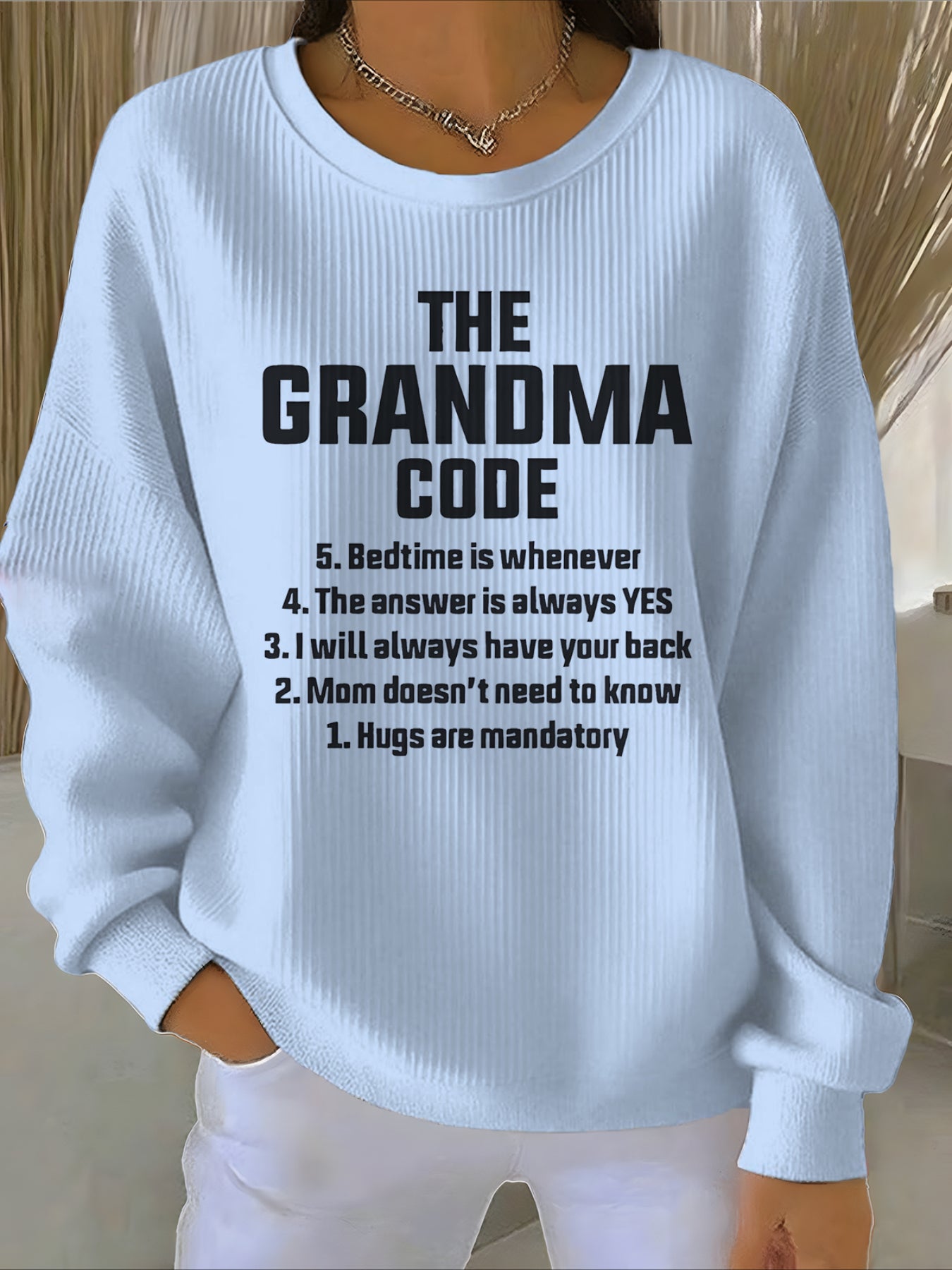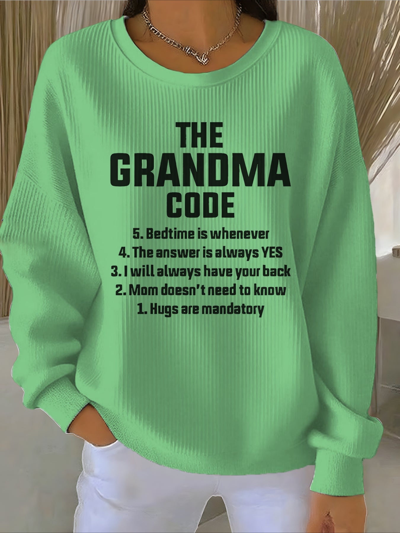 - Neckline: Crew neck