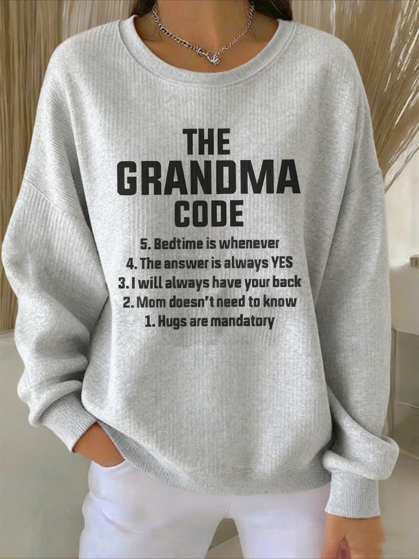 Text Printing Crew Neck Floral Long Sleeve Sweater Hoodie