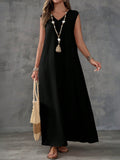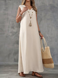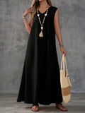 Sale Textured Fabric Sleeveless V-Neck Slit Maxi Dress