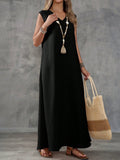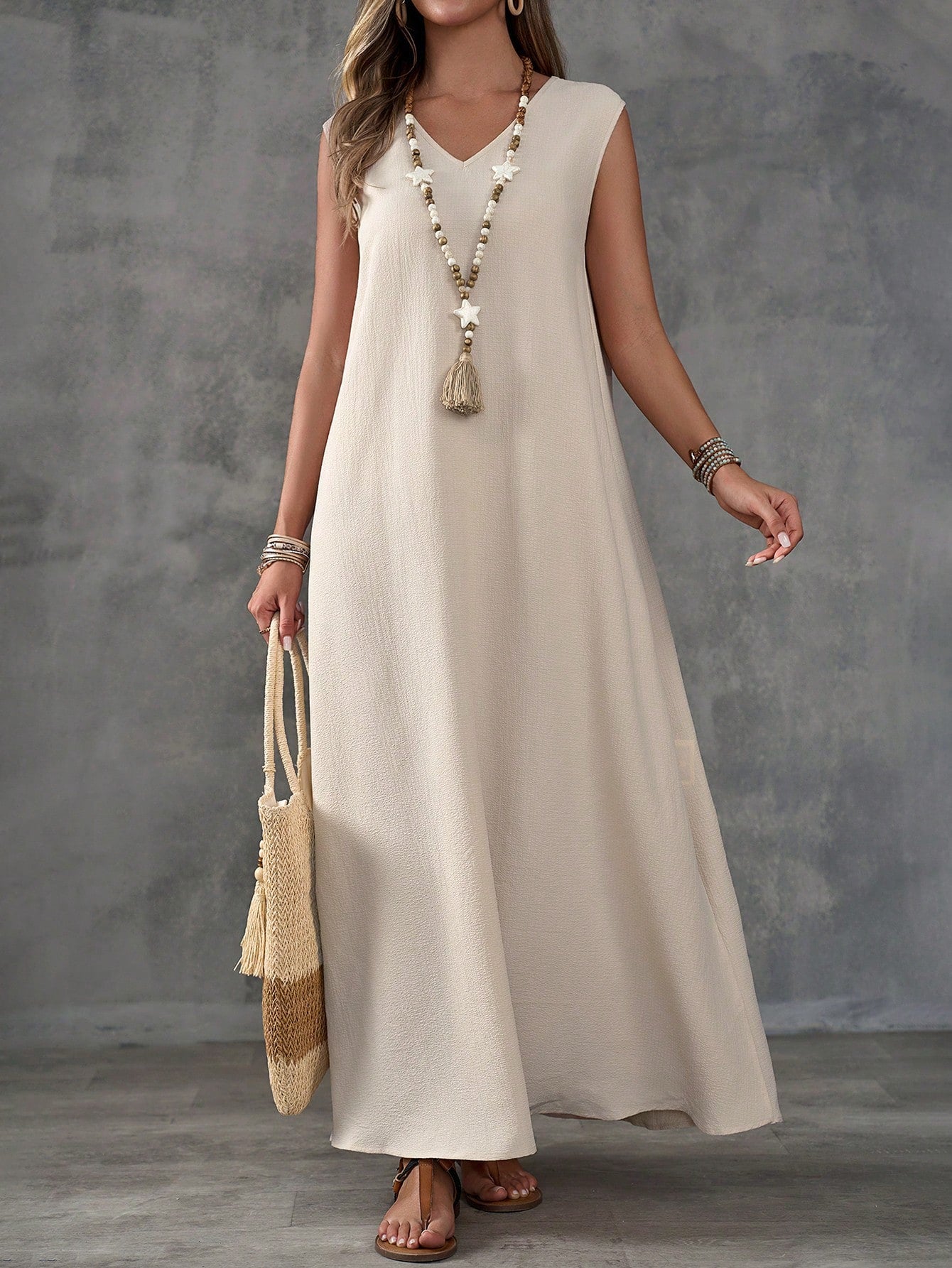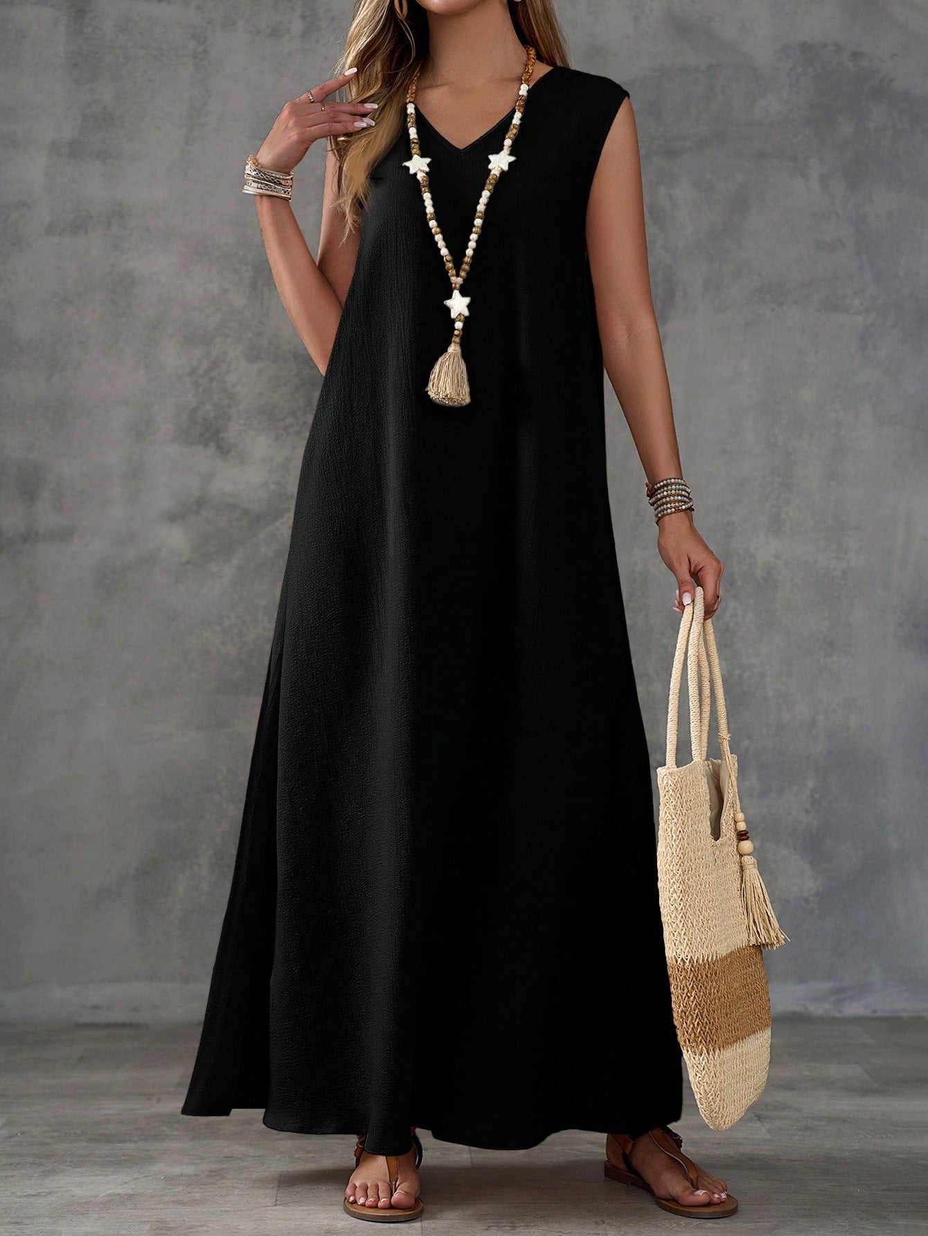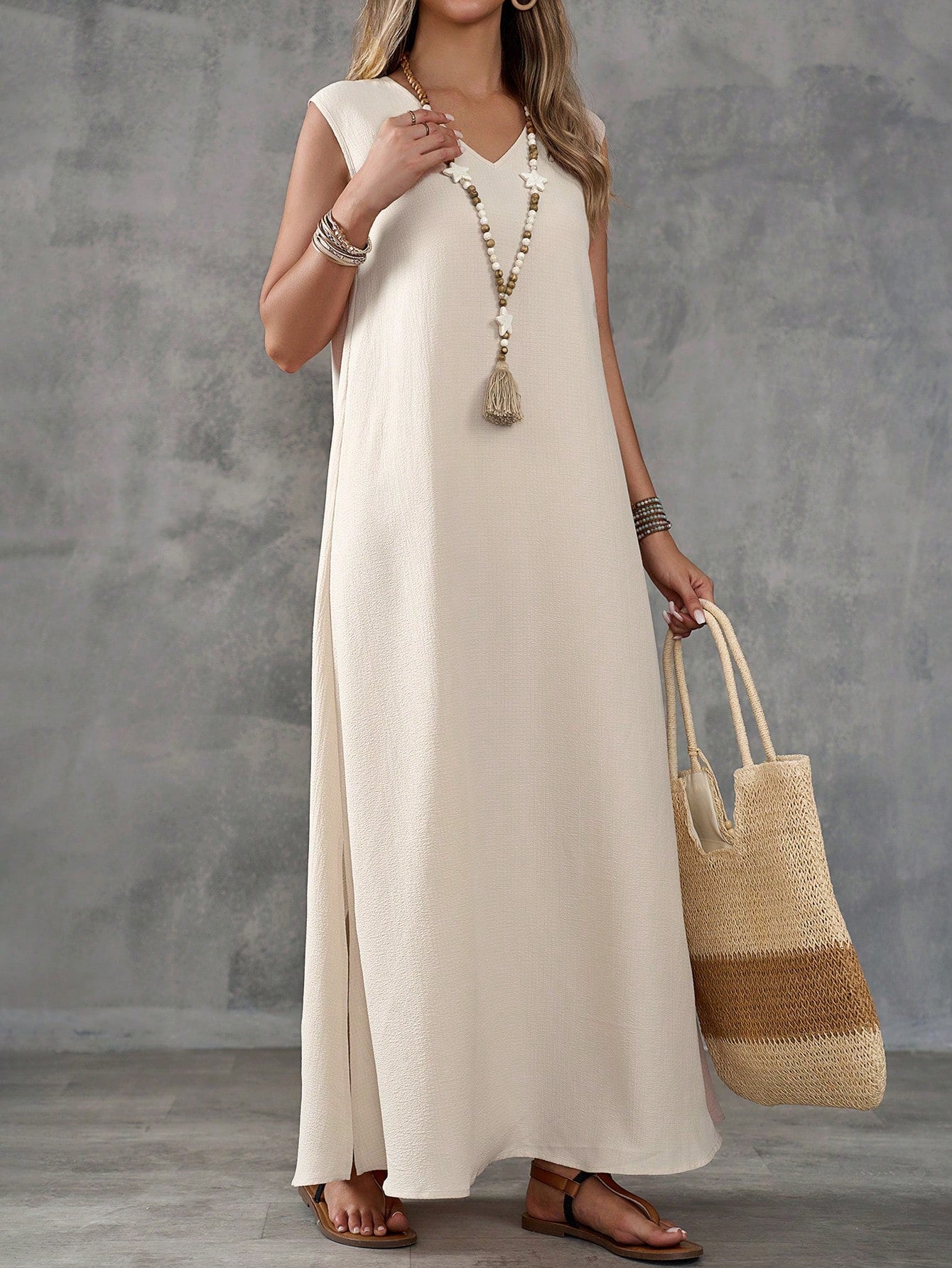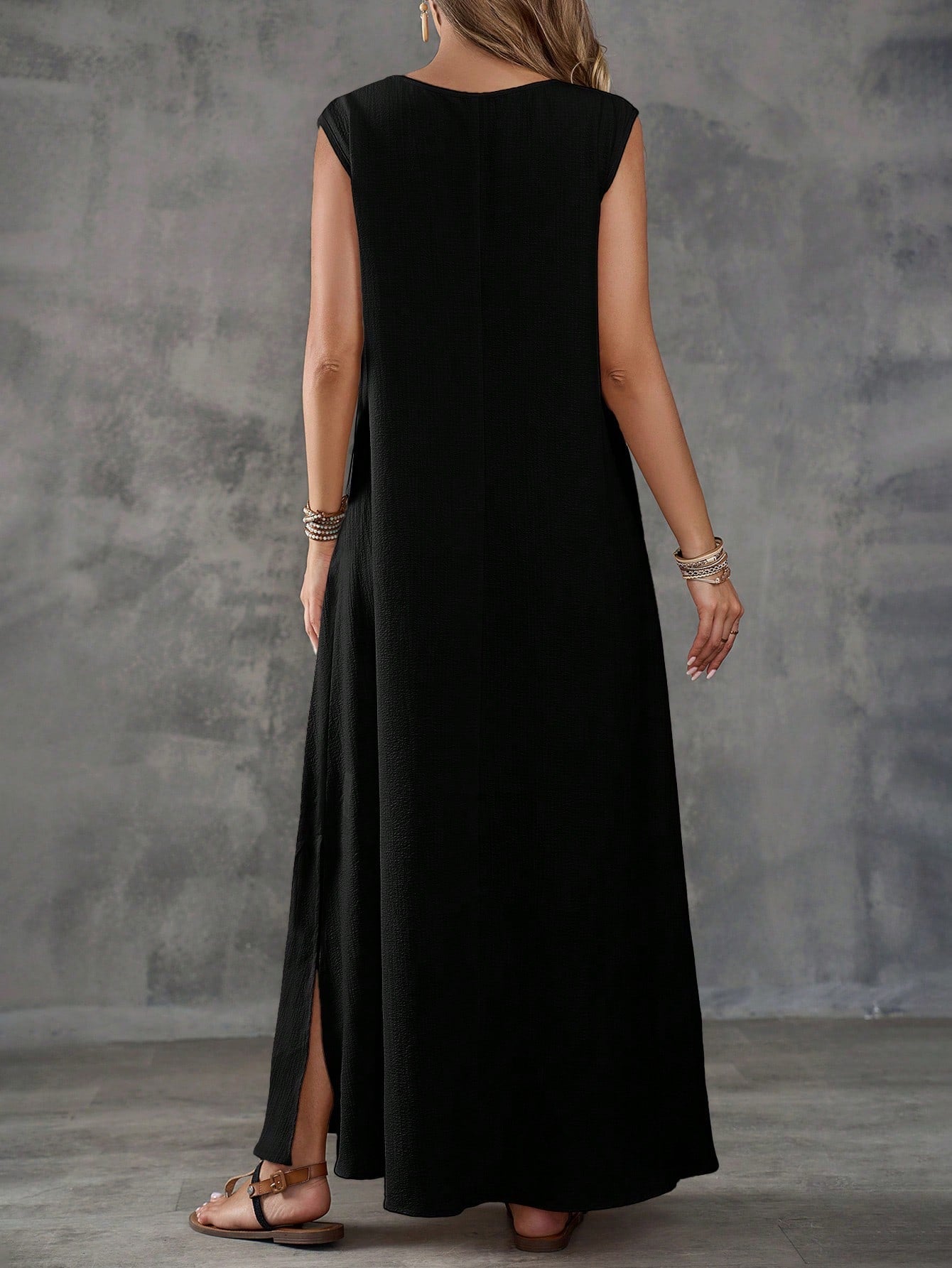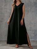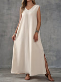Textured Fabric Sleeveless V-Neck Slit Maxi Dress