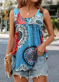 Sale Vintage Floral Print Vest, Casual V Neck Sleeveless Chain Tank Tops