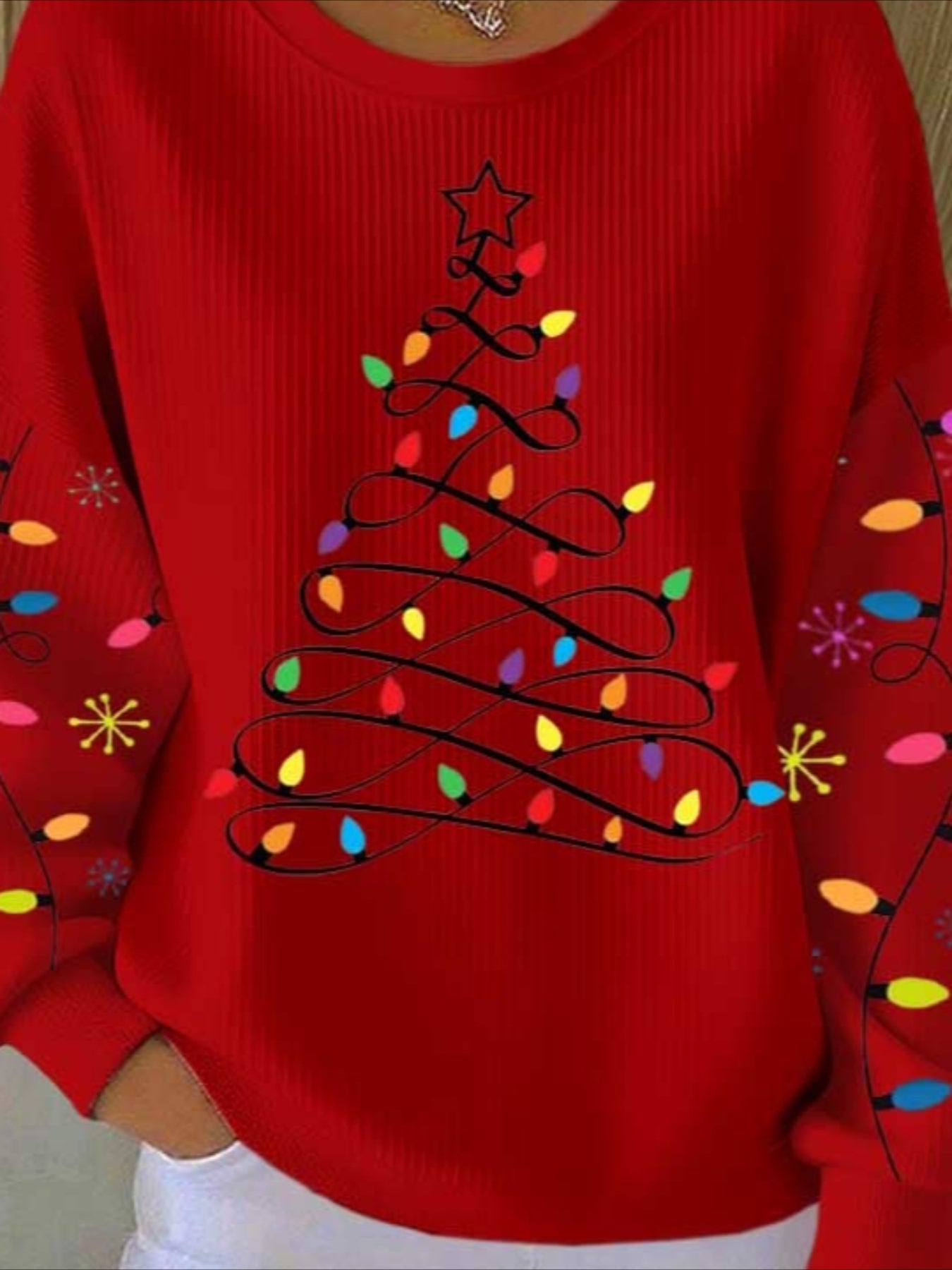 Casual Christmas Tree Printing Long Sleeve Sweatshirt