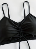 Sale Women's High-Waisted Beachwear Set With Color Block Contrast Band Two-Piece Drawstring Swimwear