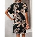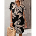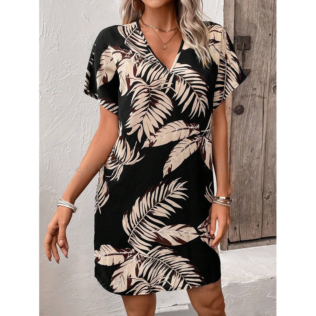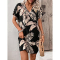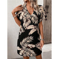 Sale Tropical Plants Print Short V Neck Shift Dress