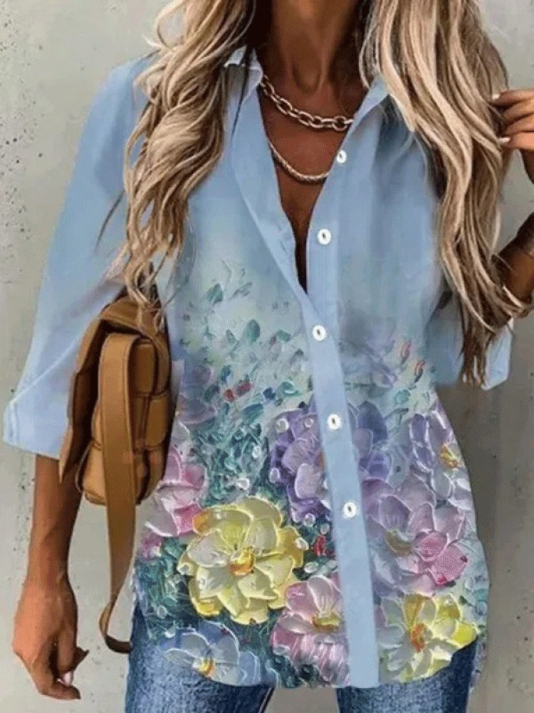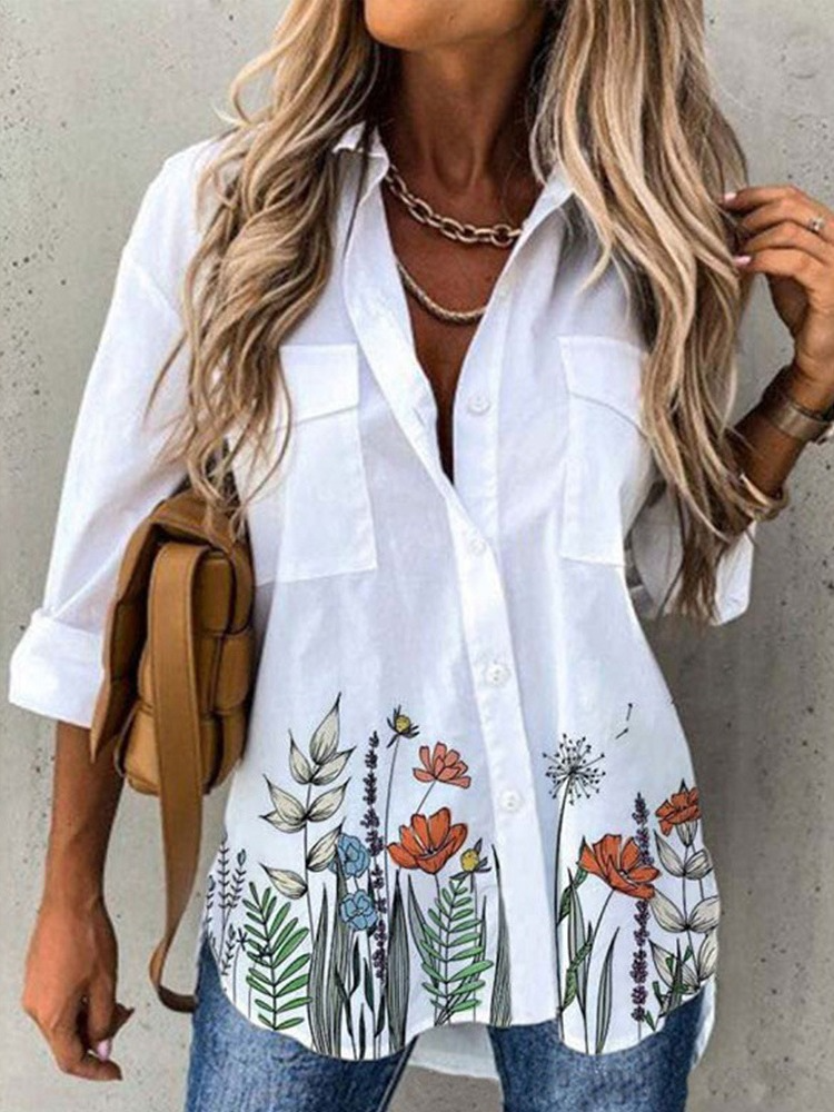 Women Floral Long Sleeve Comfy Casual Sweater Tee