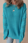 Turquoise Ruffled Eyelet Bubble Sleeve Sweater