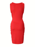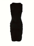 Twist Front Ruched Bodycon Dress, Sexy Sleeveless V-neck Dress
