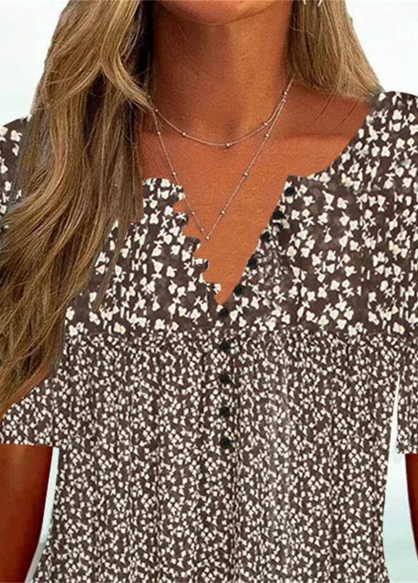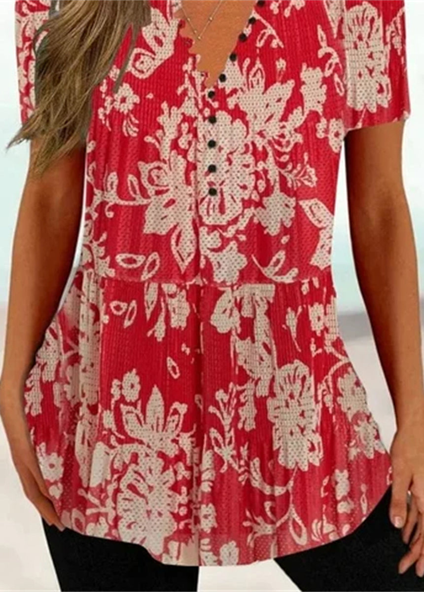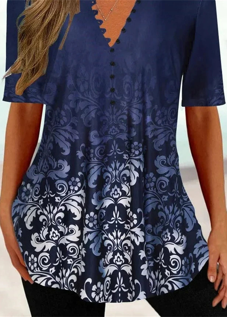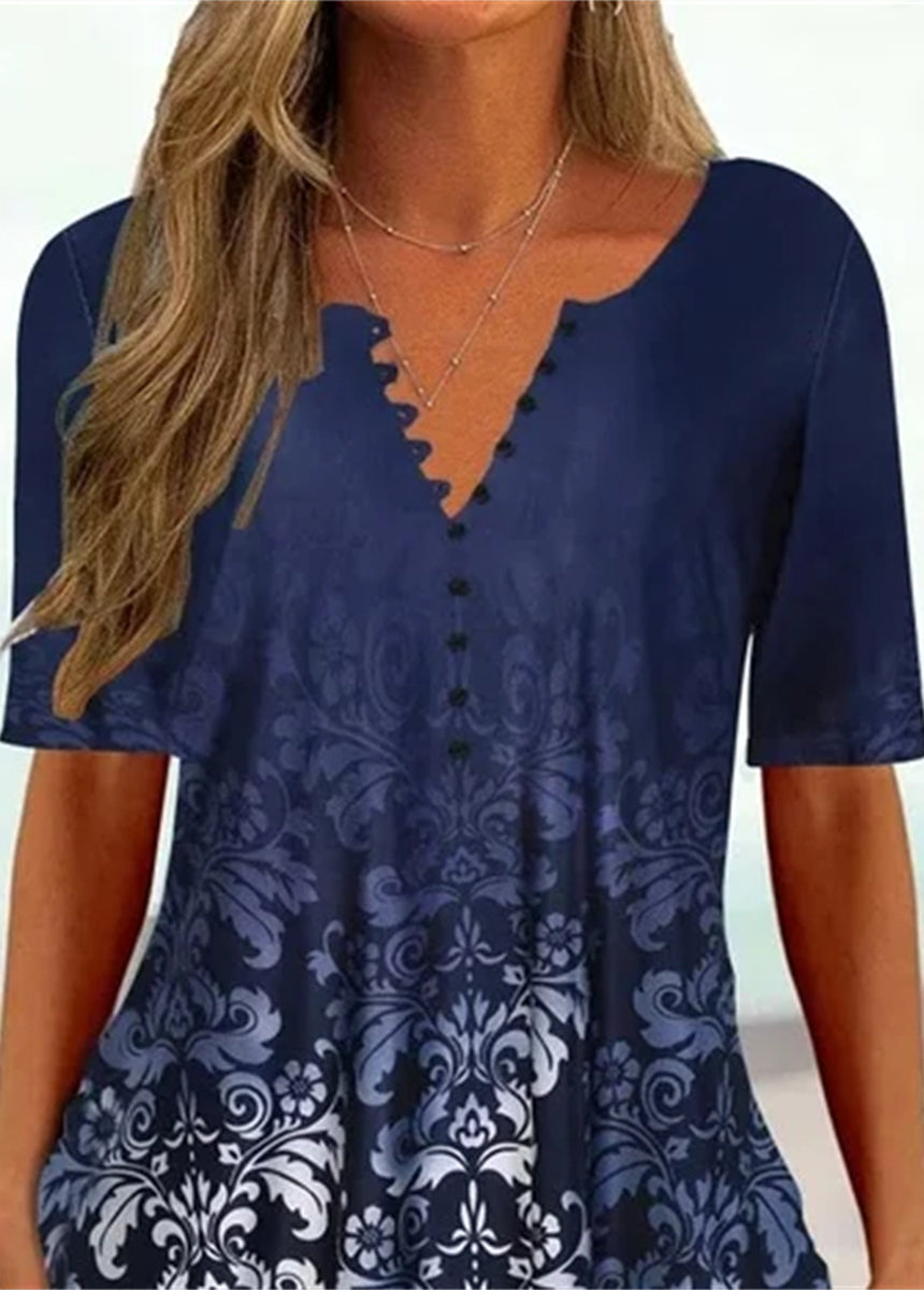 Sale V-neck Button Printed Short-sleeved T-shirt