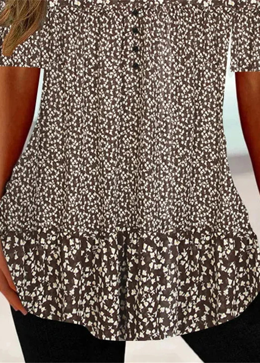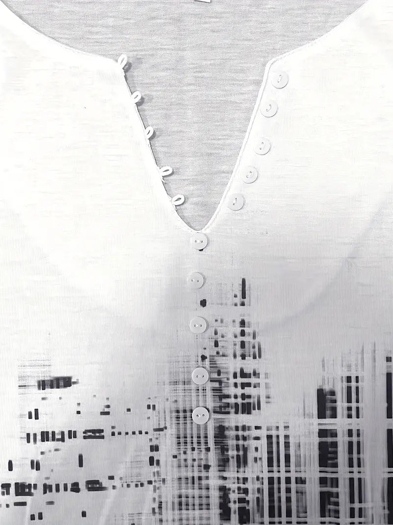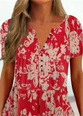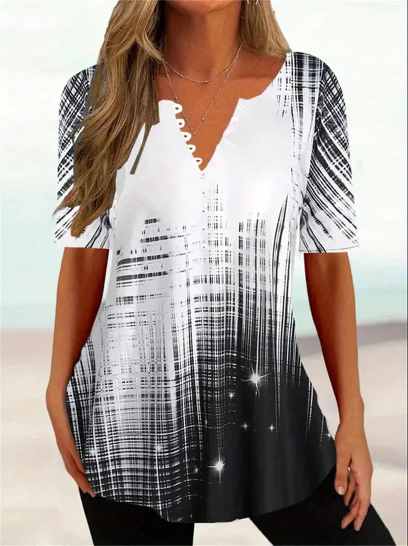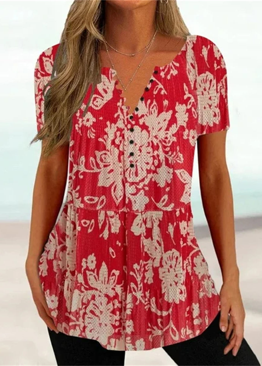 Sale V-neck Button Printed Short-sleeved T-shirt