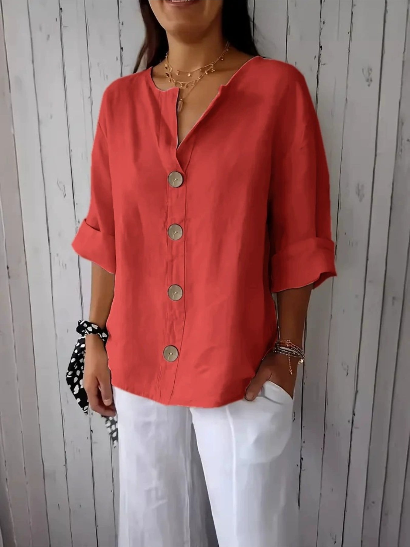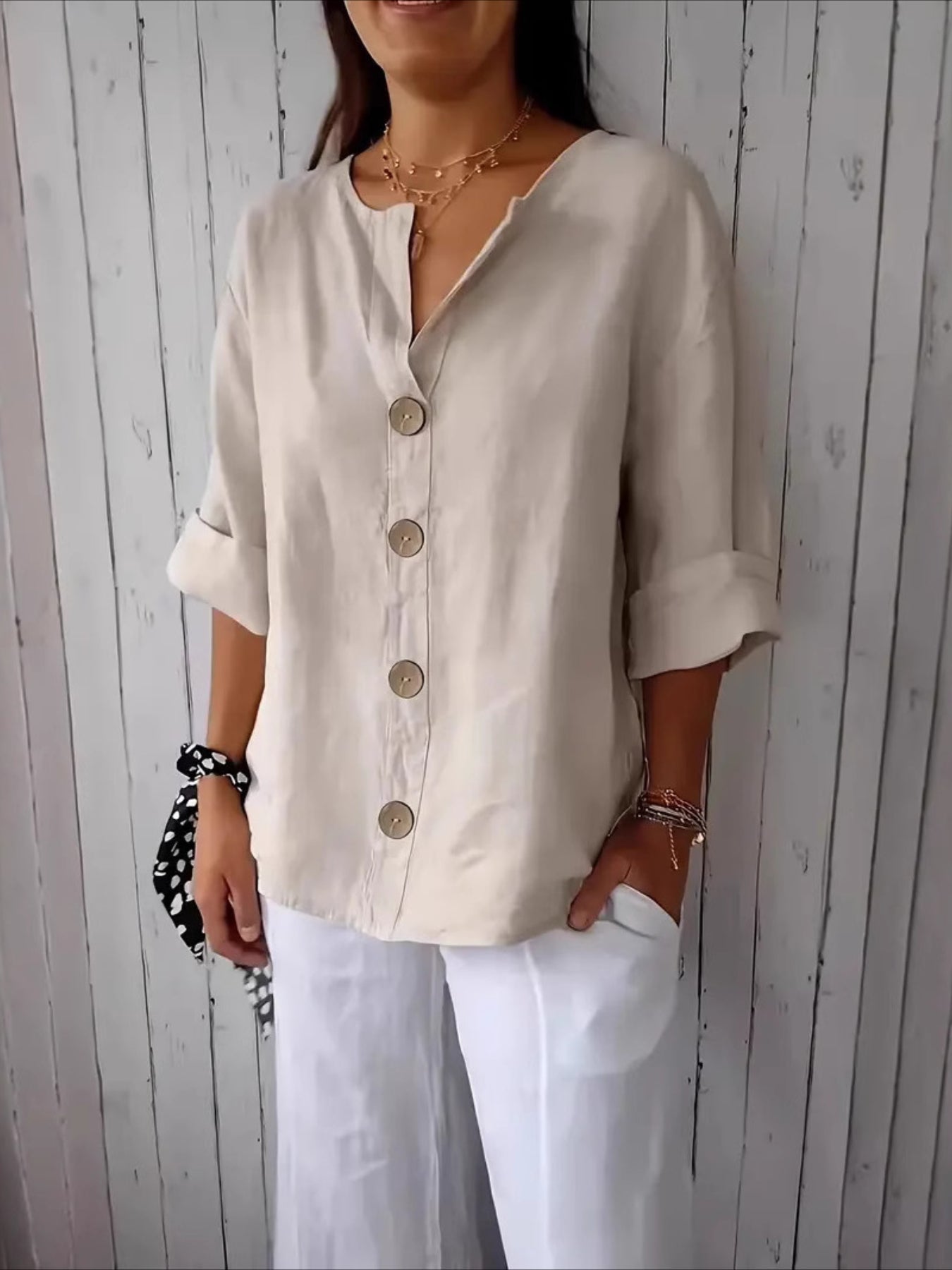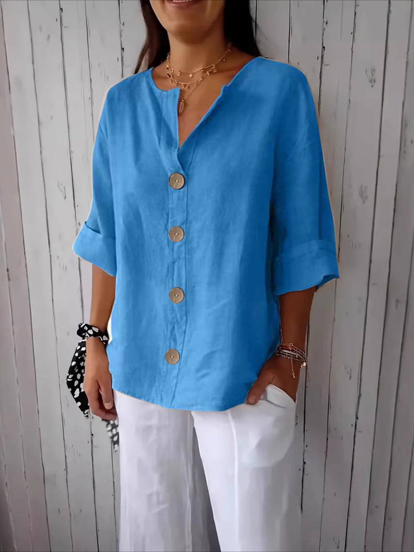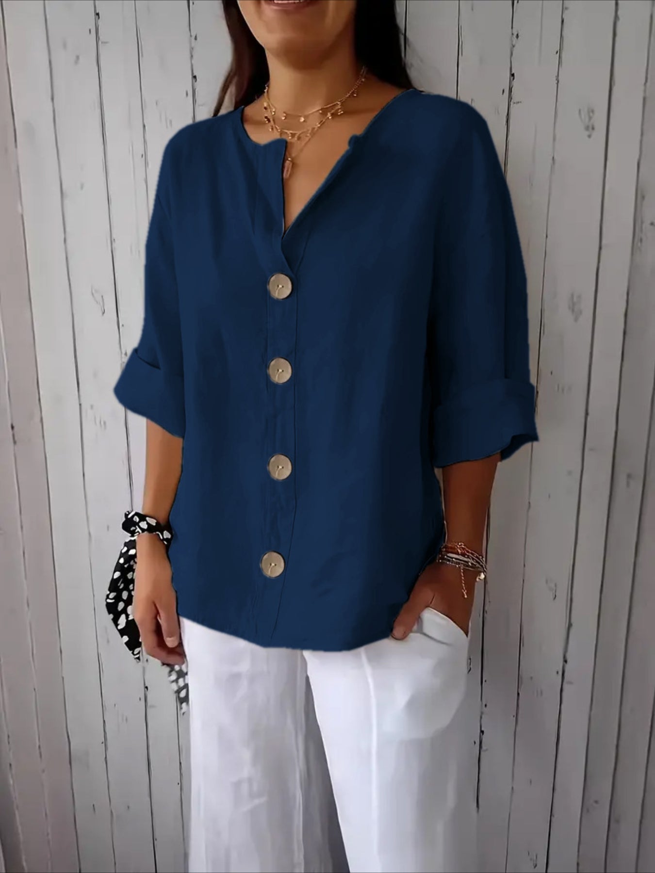 - Collar Style: V-neck