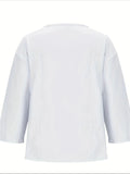 Sale Solid Simple Knit Sweater, Casual Crew Neck 3/4 Sleeve Sweater
