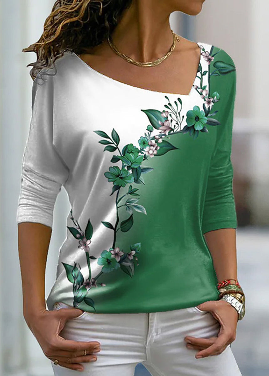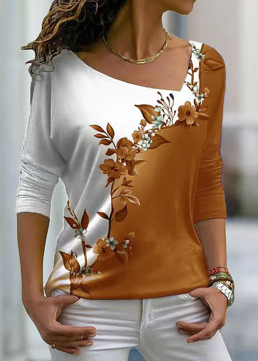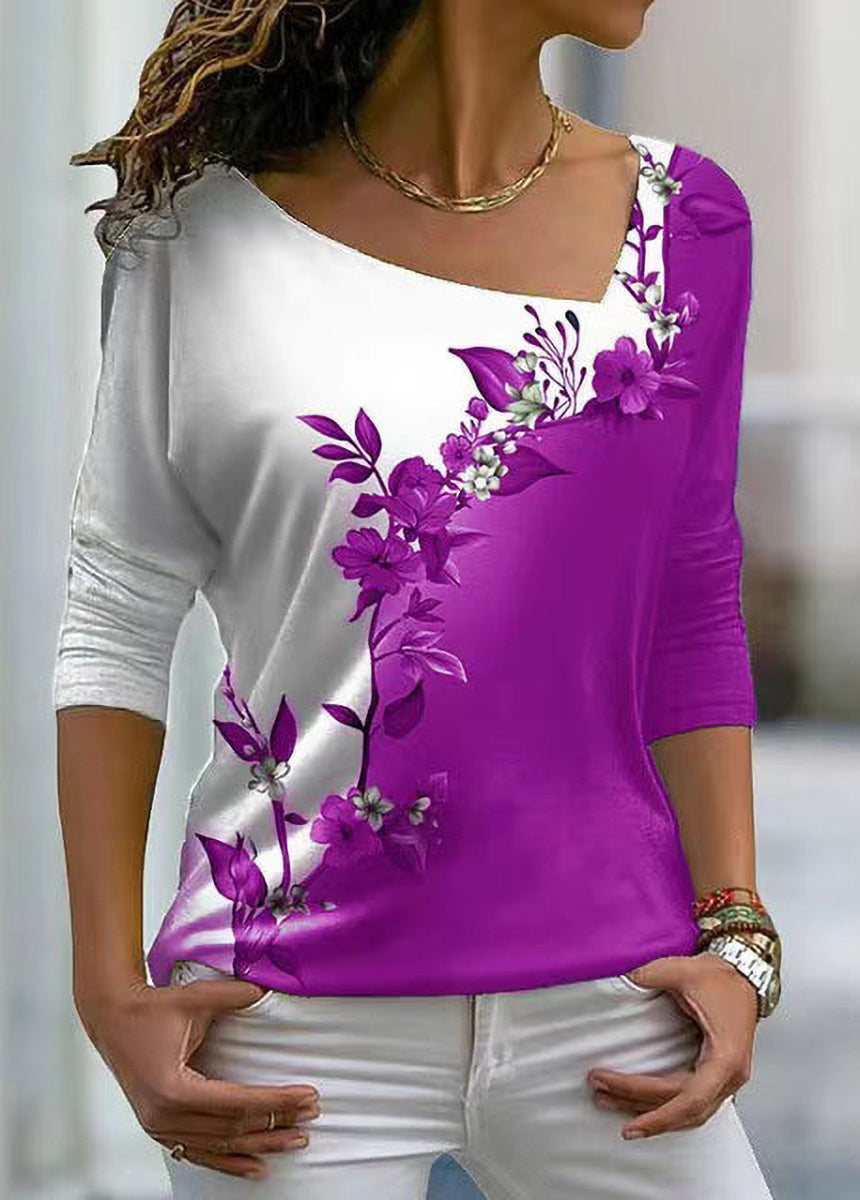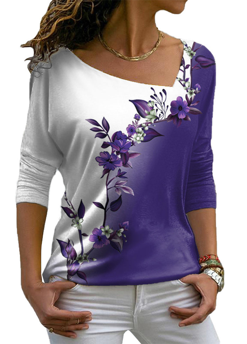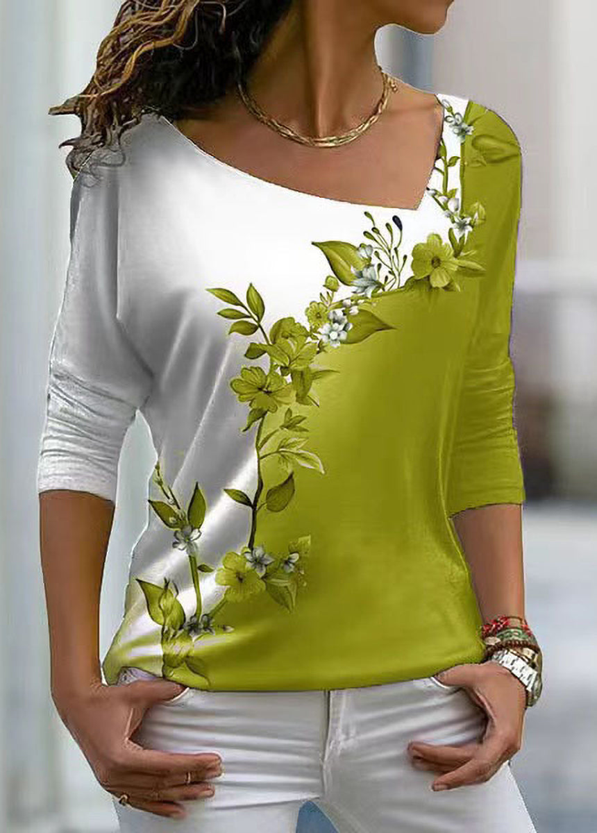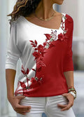 V-neck Floral Long-sleeved T-shirt