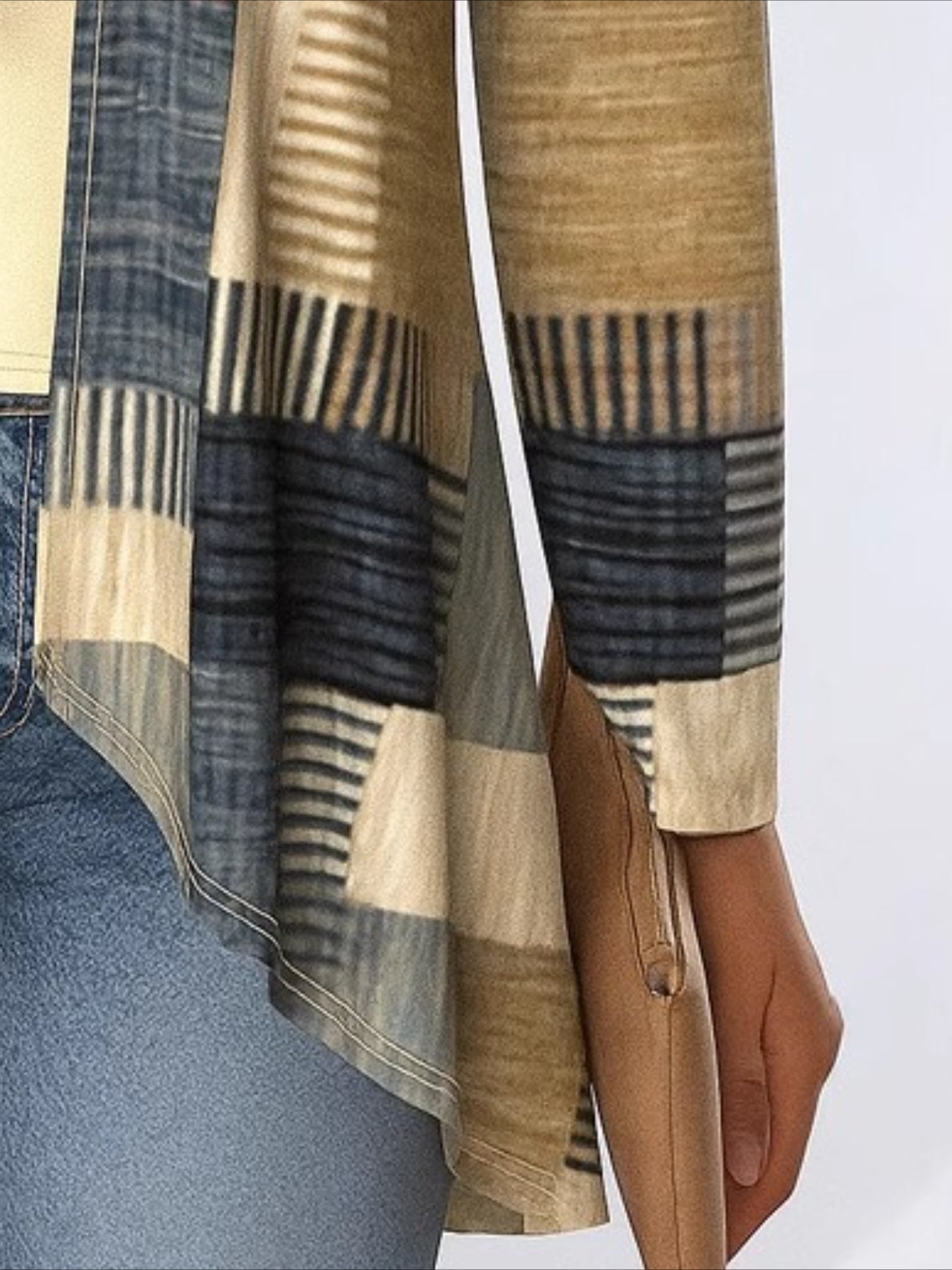 V Neck Long Sleeve Geometric Regular Micro-Elasticity Regular Fit Blouse
