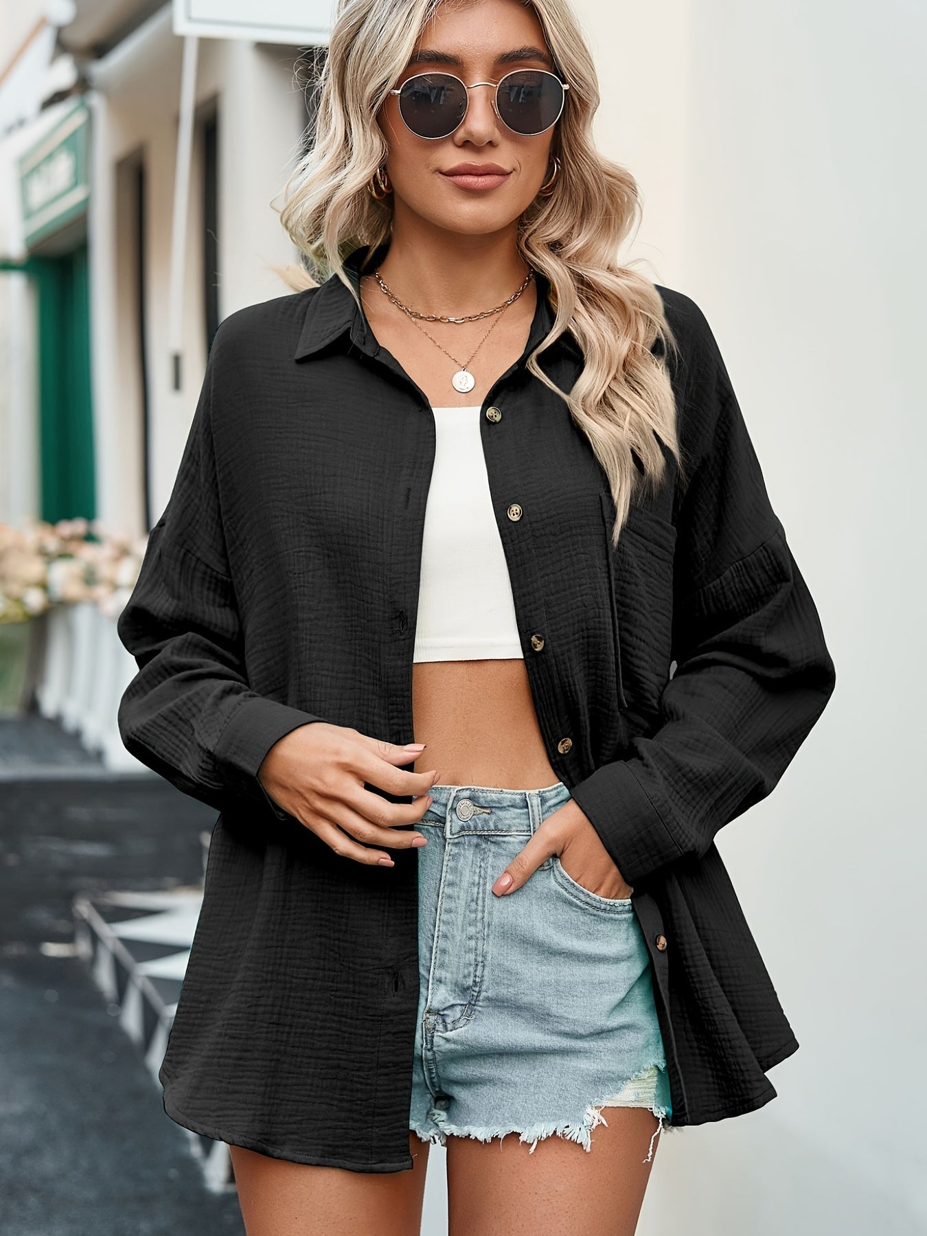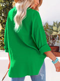 V-neck Loose Lapel Blouses, Casual Pocket Button Down Long Sleeve Fashion Shirts Tops