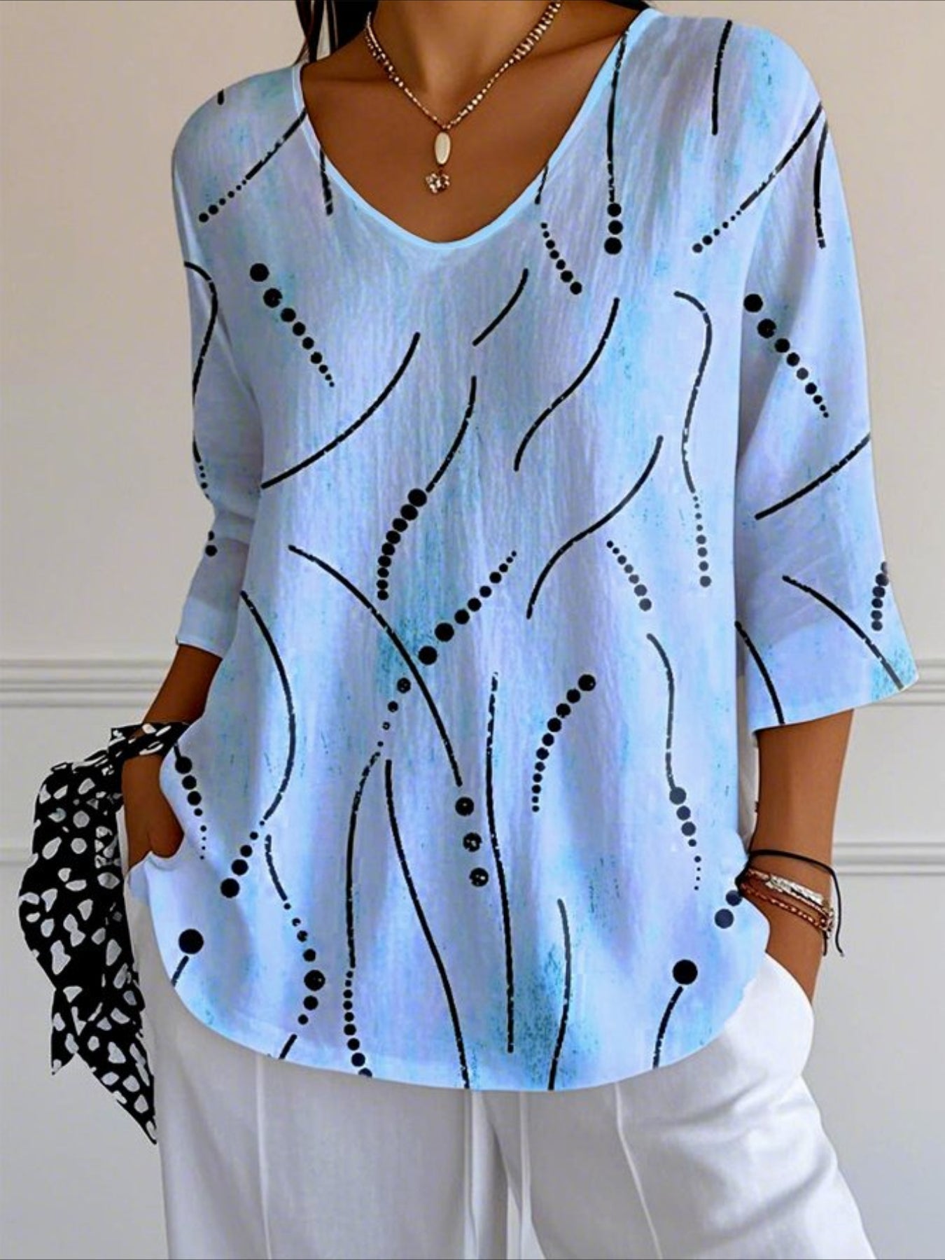 Sale V Neck Long Sleeve Geometric Regular Micro-Elasticity Regular Fit Blouse