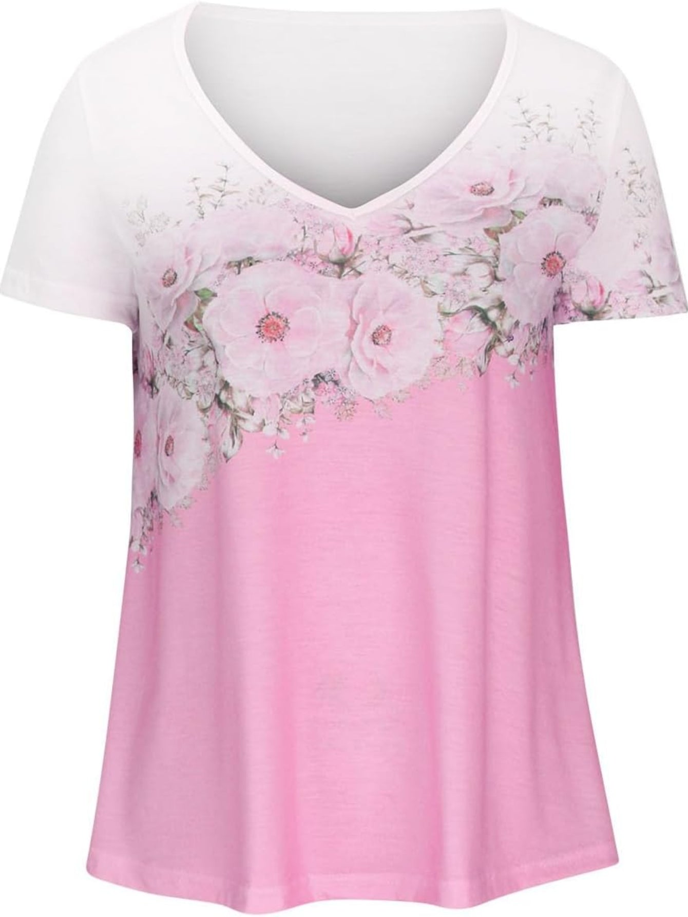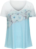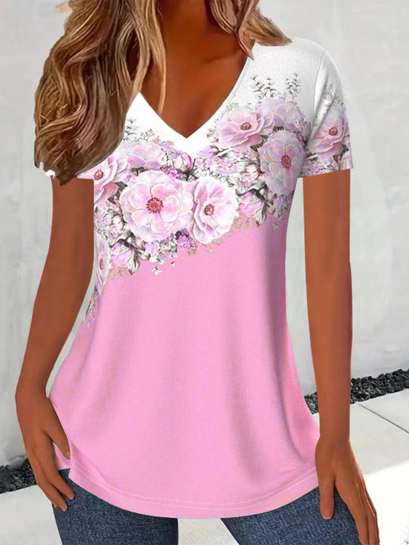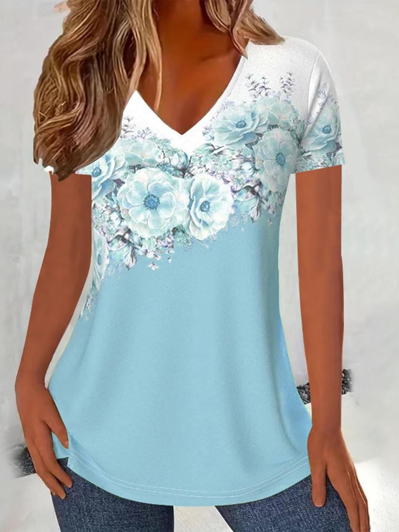 Sale V Neck Short Sleeve Cute Print Graphic Tees