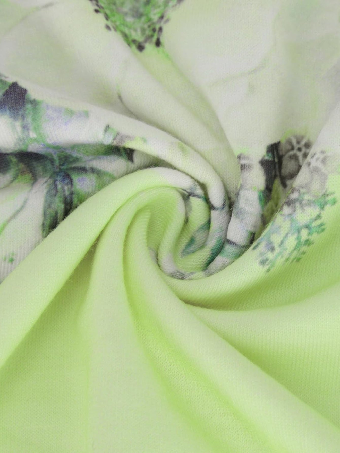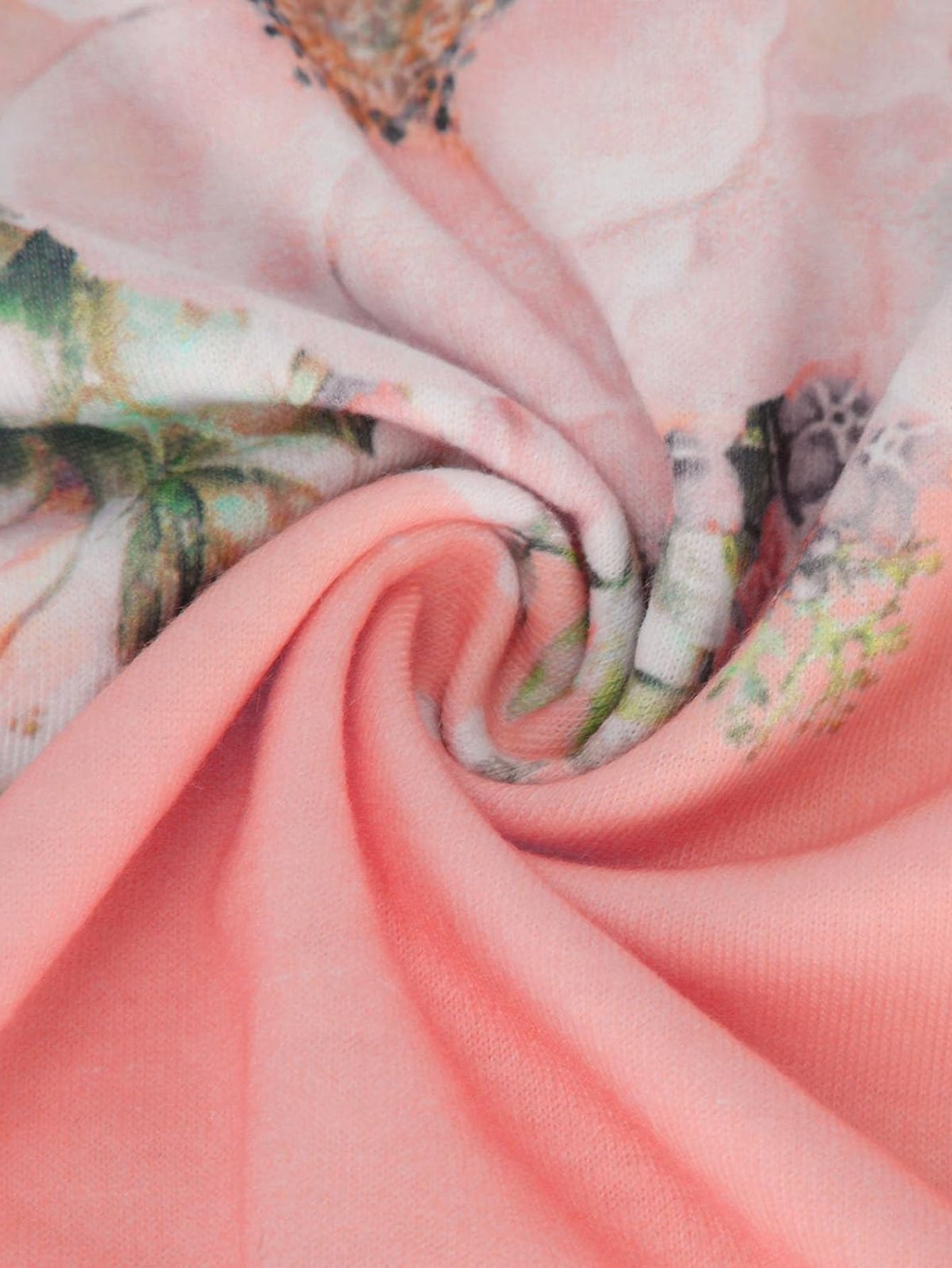 Sale Elegant Floral Print High-Stretch Round Neck Long Sleeve Top
