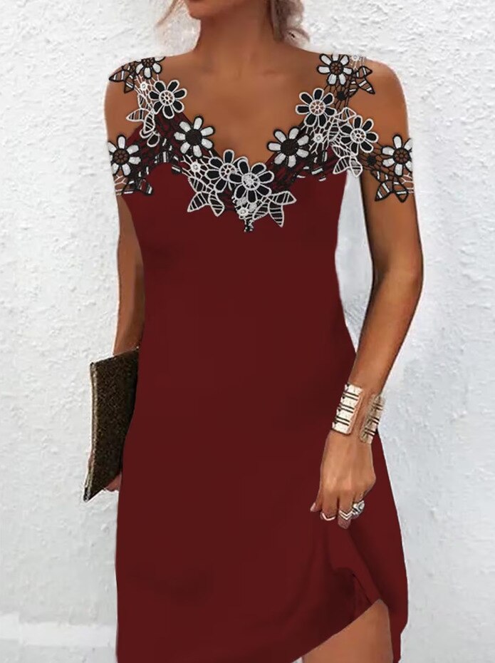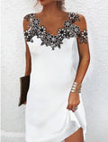 V Neck Short Sleeve Hollowing Out Midi Dress