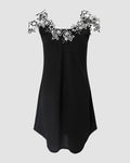 Sale Elegant Floral Print Knee-Length Short Sleeve Round Neck A-Line Dress