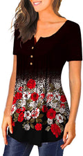 Christmas Tree Print Button Decor T-shirt, Casual Long Sleeve Plaid Print T-shirt
