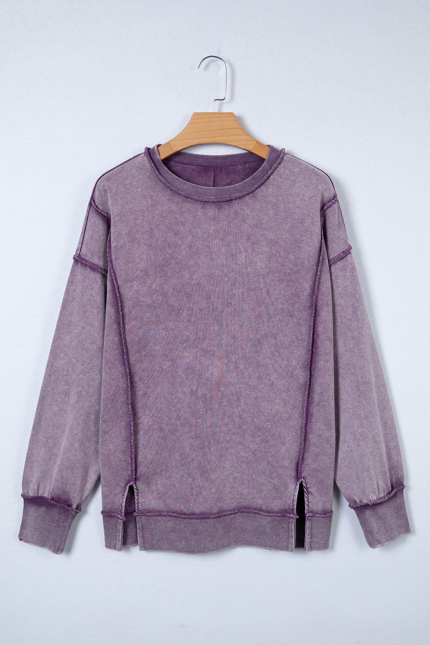 Valerian Mineral Wash Exposed Seam Side Slit Sweatshirt