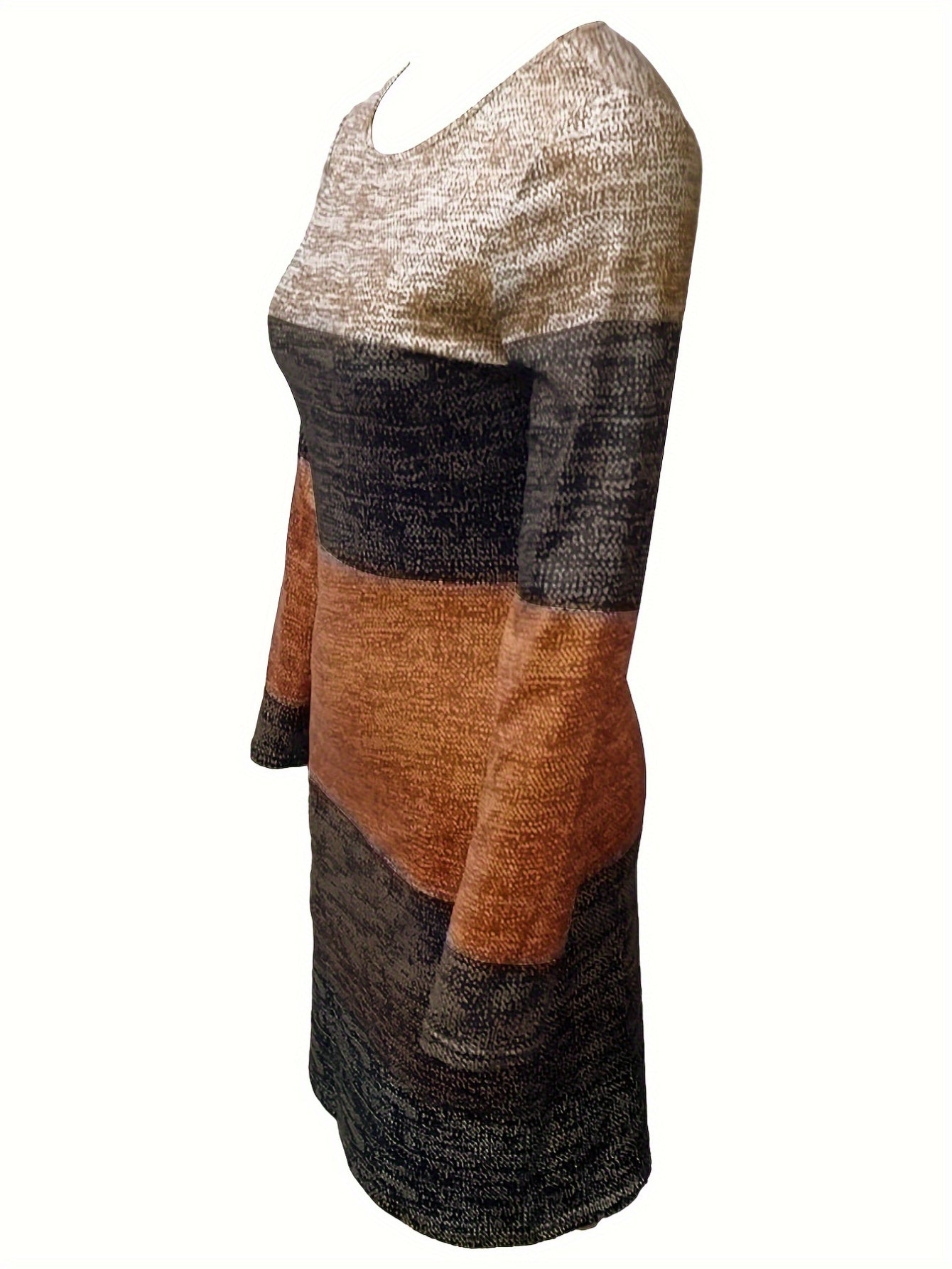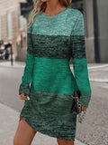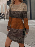 Vibrant Color Block Crew Neck Elegant Long Sleeve Dress