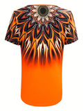 Vibrant Floral Print Crew Neck Short Sleeve Ombre T-Shirt