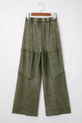 Vineyard Green Mineral Wash Tiered Wide Leg Patchwork Drawstring Pants