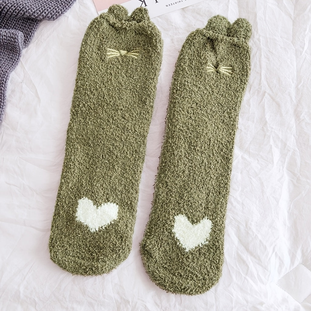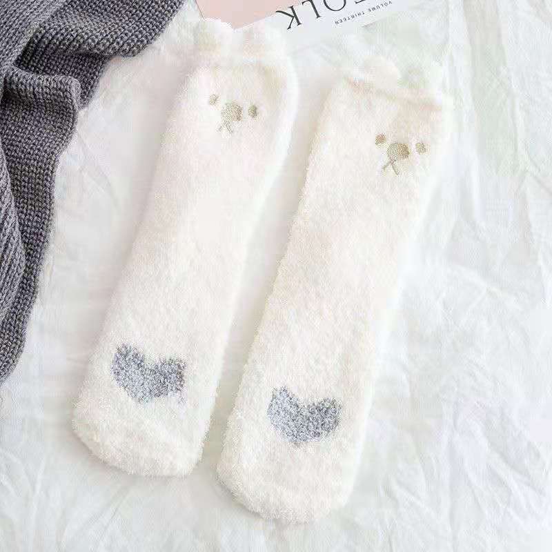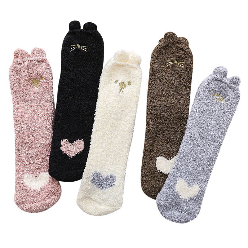 Warm & Fuzzy Cartoon Animal Socks, Crew Length Warm Coral Fleece Socks