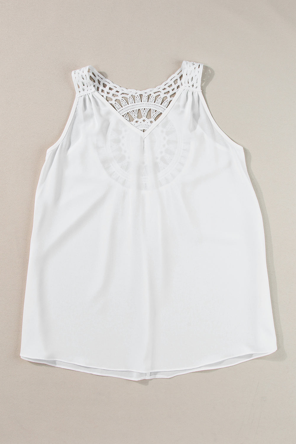 White Bohemian Crochet Patchwork Sleeveless Tunic