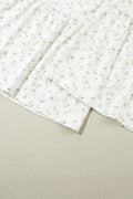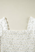 White Boho Floral Smocked Wide Leg Short Puff Sleeve Jumpsuit