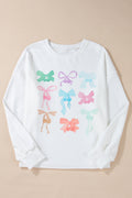 White Bowknot Pattern Drop Shoulder Loose Sweatshirt