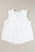 Sale Parchment Textured Frilly Trim V Neck Sleeveless Top