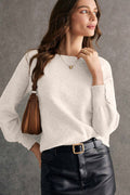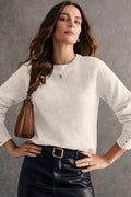 Sale White Buttoned Bishop Sleeve Crew Neck Sweater