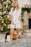 White Christmas Print Short Sleeve Shirt and Shorts Pajama Set