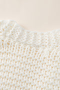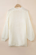 White Chunky Oversize Knit Drop Shoulder Puff Sleeve Cardigan