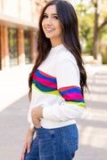 Sale White Colorful Striped Accent Long Sleeve T Shirt