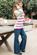 White Colorful Striped Drop Shoulder Crew Neck Sweater