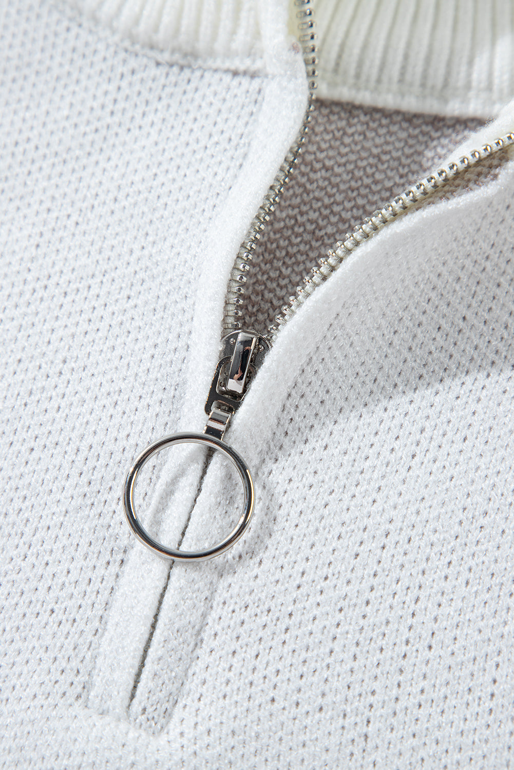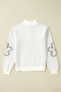 White Contrast Flower Half Zipper Stand Neck Sweater
