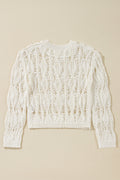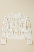 White Cut Out Crochet Crew Neck Loose Fit Sweater