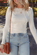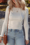 Sale White Exposed Seam Ribbed Knit Slim Fit Long Sleeve Top