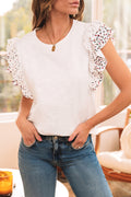 White Floral Lace Eyelet Patched Butterfly Sleeve Blouse