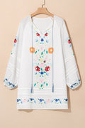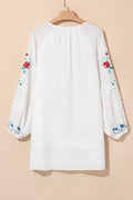White Floral Print Boho Tassel Tie Split Neck Tucking Detail Puff Sleeve Mini Dress