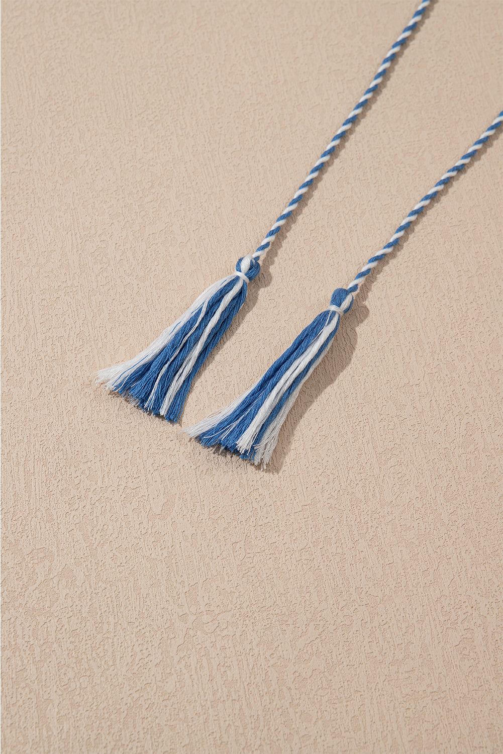 - Reminiscent of the flower child era with tassel tie and pin-tuck details.
