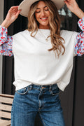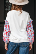 White Floral Ruffled Balloon Sleeve Patchwork Loose Blouse